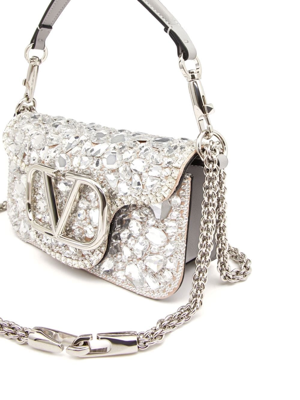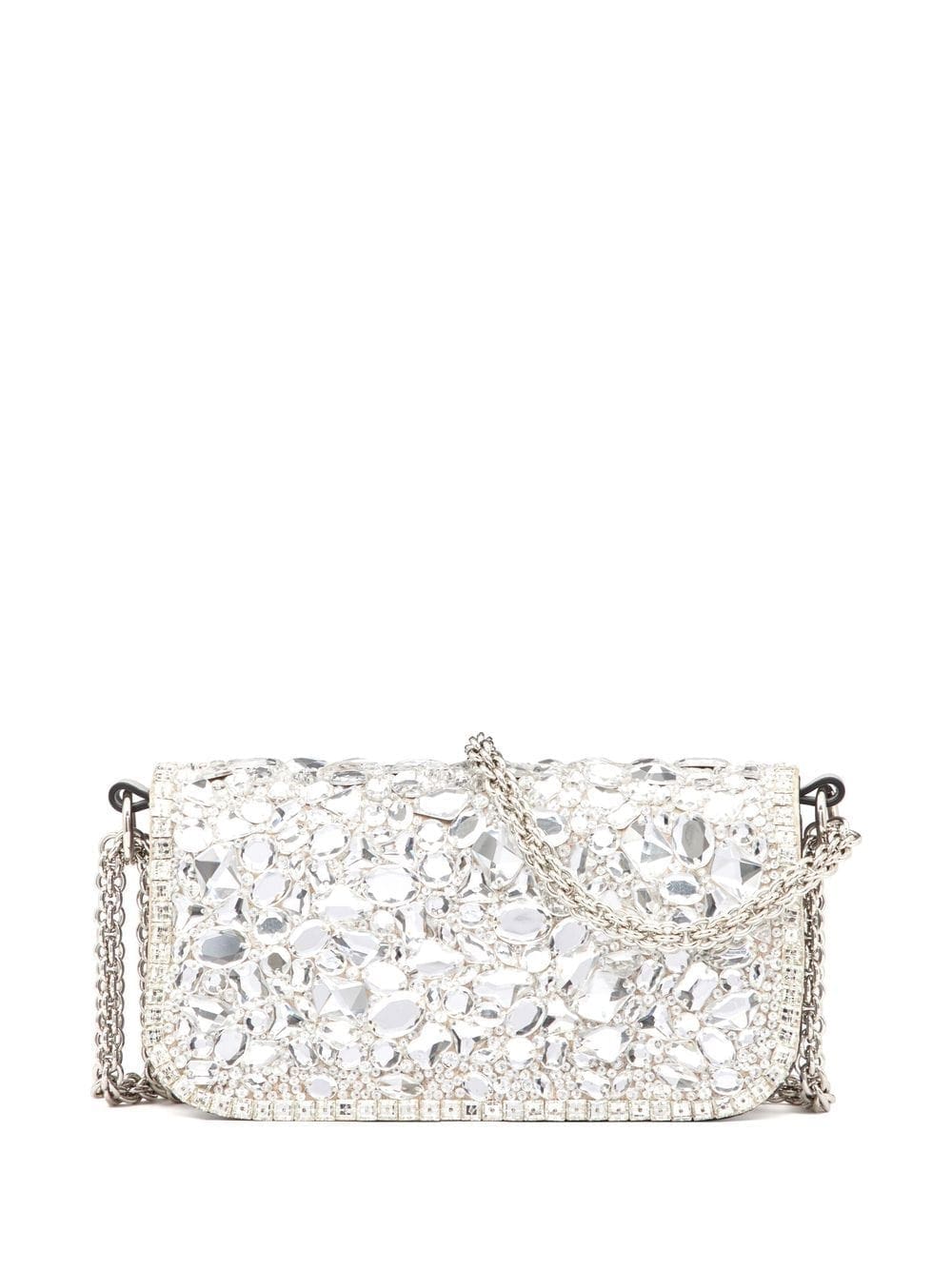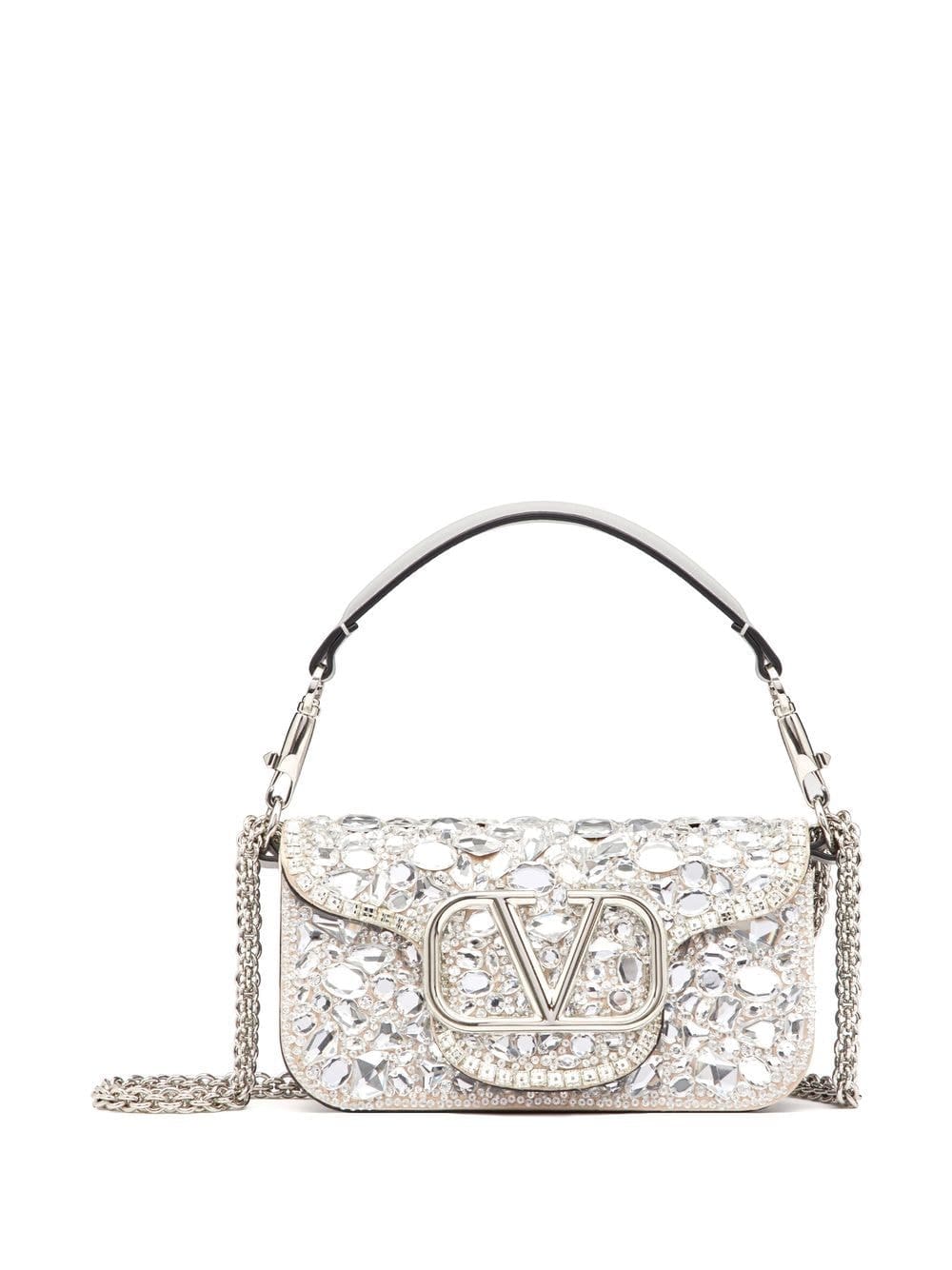 silver-tone lambskin crystal embellishment signature V logo plaque silver-tone hardware detachable leather and chain-link shoulder strap foldover top with magnetic fastening main compartment