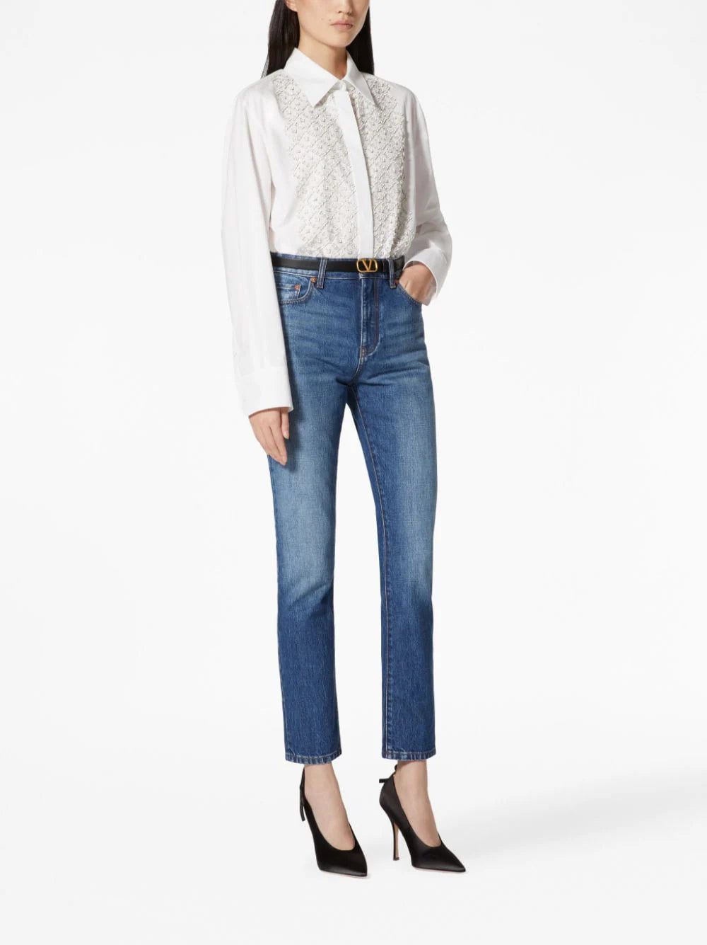 Miu Miu logo-embroidered cropped denim shirt