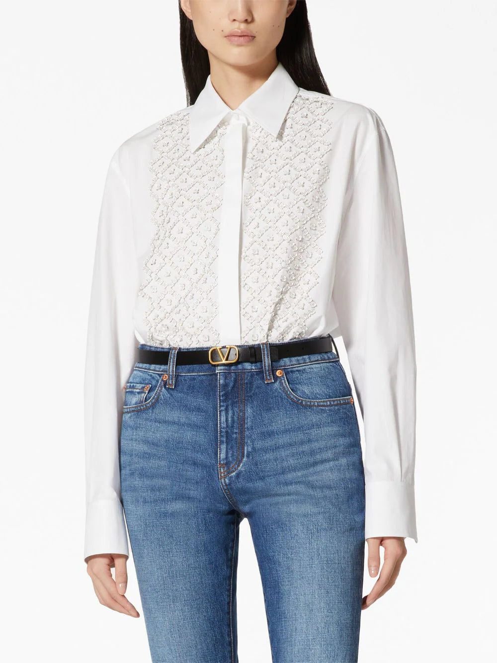 Miu Miu logo-embroidered cotton shirt