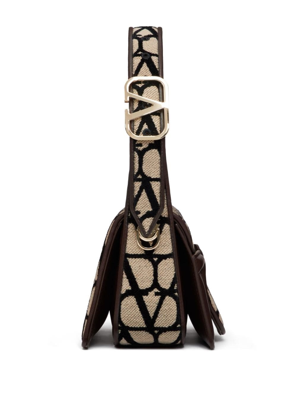 Valentino Garavani's Le Grand Deuxième shoulder bag references ‘90s styles. Rendered in signature Toile Iconographe, it features an elongated silhouette and curved flap opening, further contributing to the retro feel.