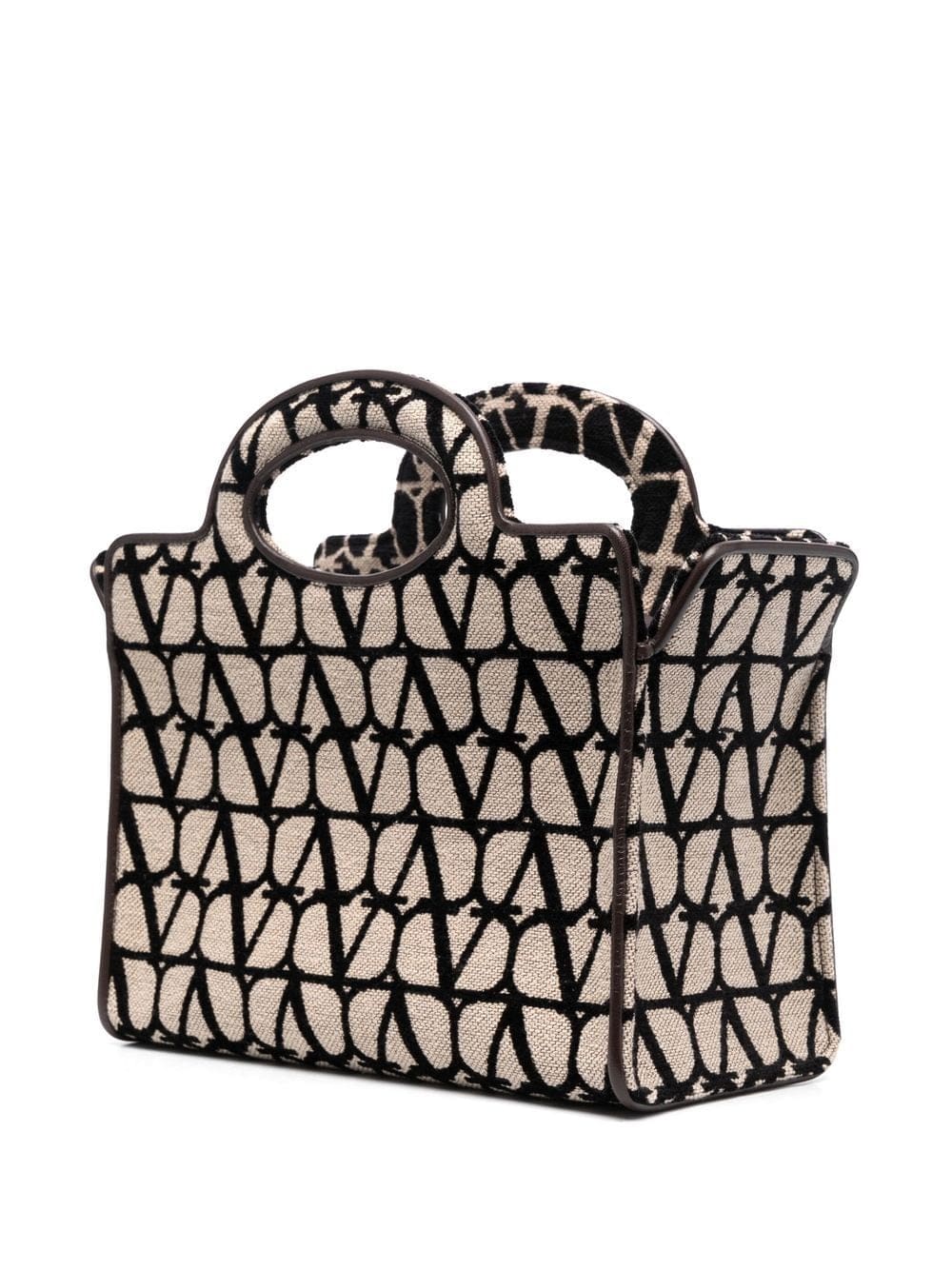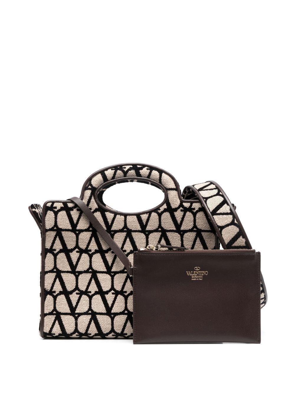 Valentino Garavani takes logomania to the next level with the Toile Iconographe collection. The brand's iconic VLogo signature is turned into a bold pattern for maximum optical impact, lending the pieces a graphic yet elevated branded finish. It appears on this tote bag in its usual jacquard construction.