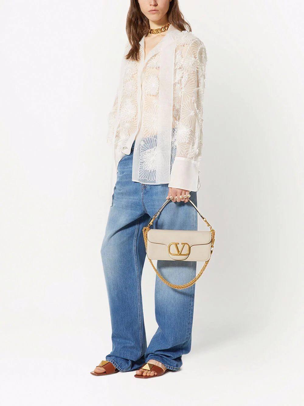 Valentino Garavani's bag honours the brand's iconic VLogo Signature - this cream leather iteration is accented with a gleaming gold-tone plaque at the centre. A versatile design, it can also be worn over one shoulder thanks to the detachable chain-link strap.