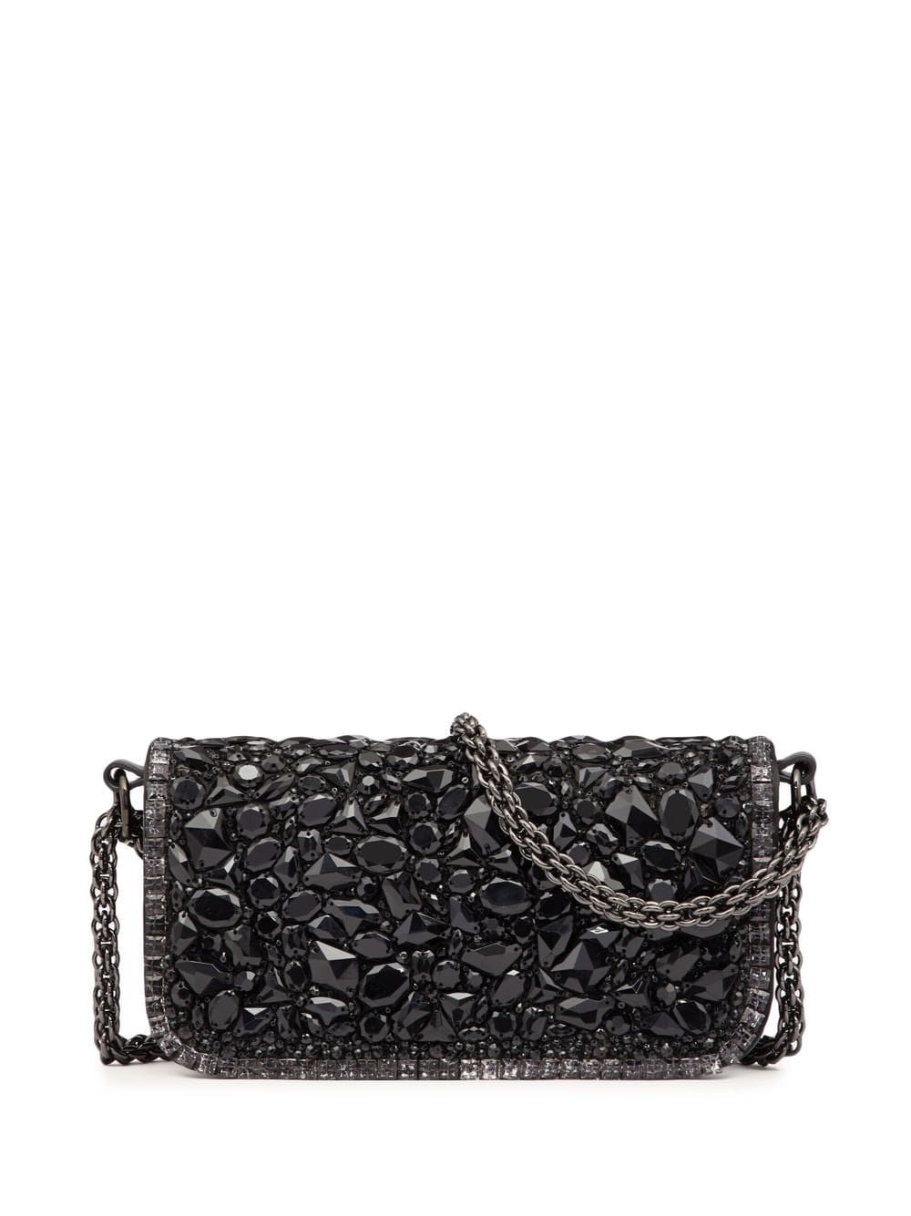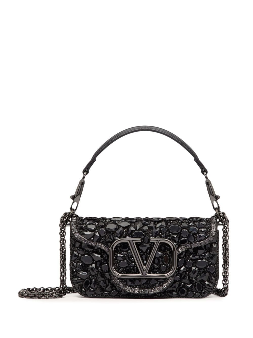 An ode to Valentino Garavani's maximalist aesthetic, this Locò shoulder bag is embellished with black-hued crystals in varying shapes and sizes. Displayed front and centre, an instantly recognisable VLogo Signature plaque completes the look.