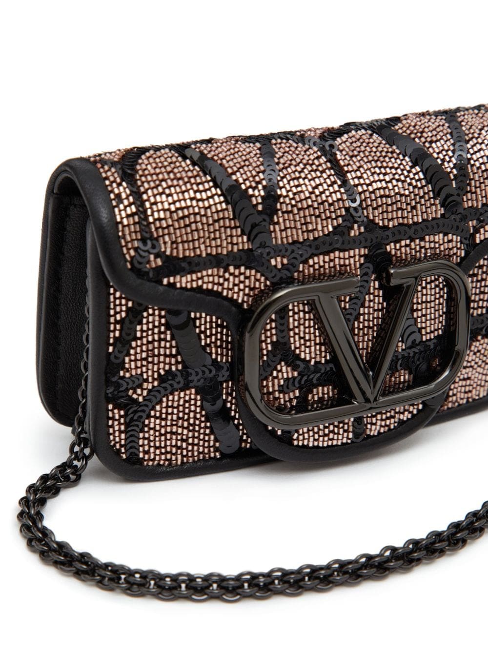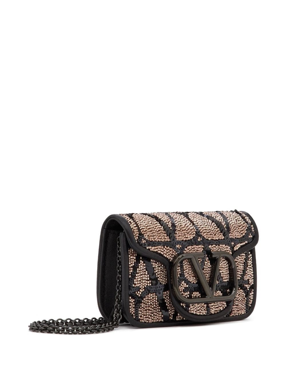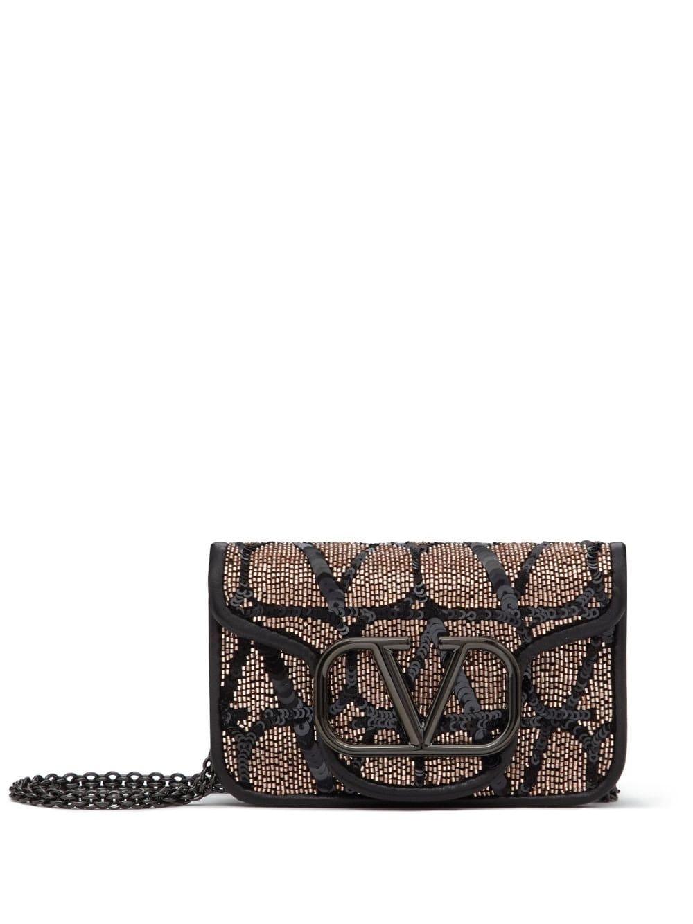 An ode to Valentino Garavani's maximalist aesthetic, the Locò shoulder bag arrives to the AW23 season with a new iteration – a sequin design embroidered to the iconic Toile Iconographe pattern. Set atop this bi-tonal background is the instantly recognisable VLogo Signature plaque.