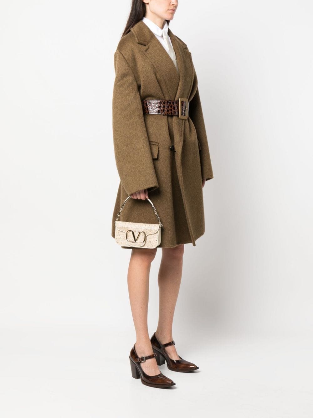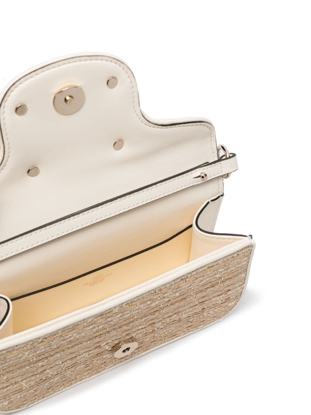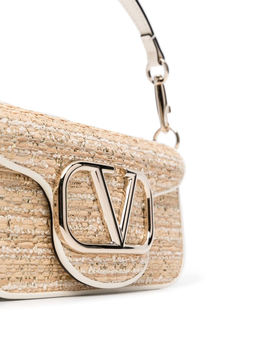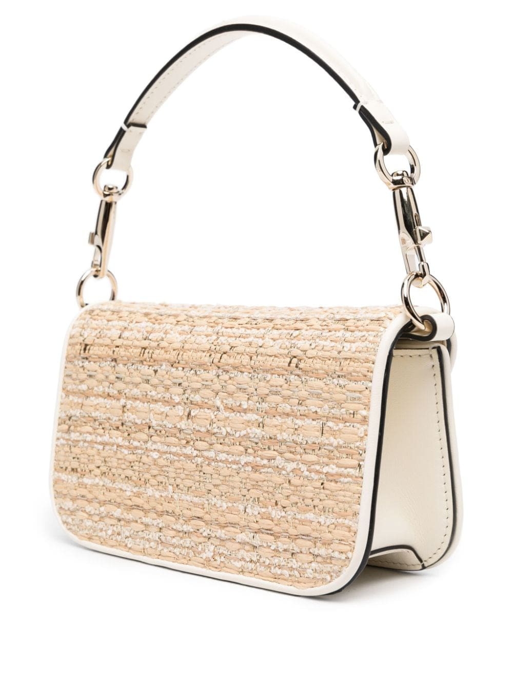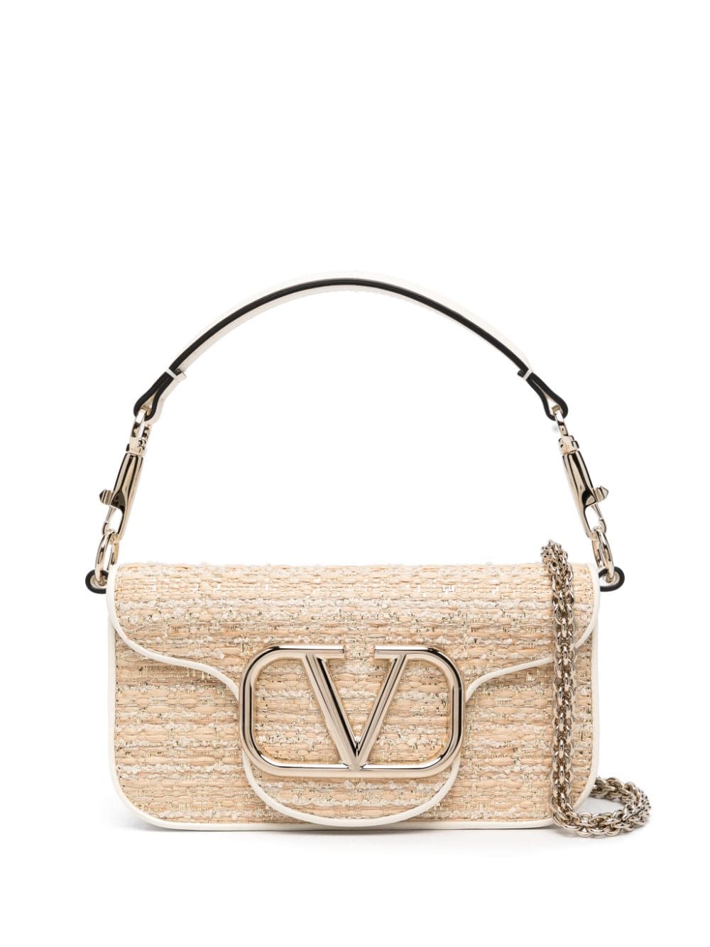 Valentino Garavani's signature VLogo steals focus on this beige tweed bag. It's fitted with a detachable Rockstud-embellished top handle and a chain-link shoulder strap for versatile styling.