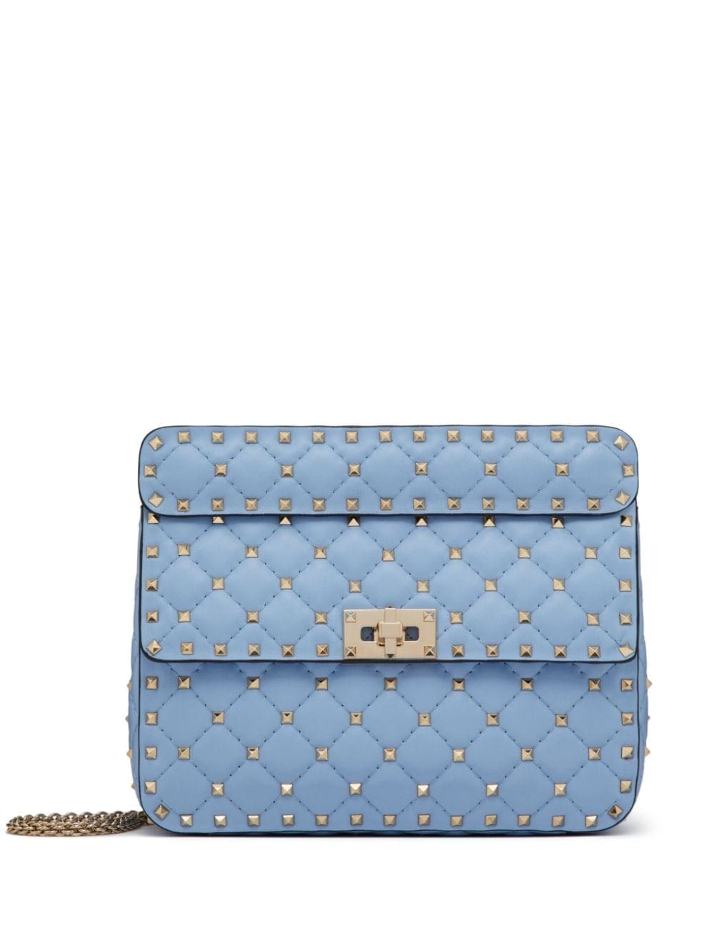 Valentino Garavani’s iconic Rockstuds are an ode to its home city – they’re inspired by the bugnato exteriors of Rome’s palazzos. Spiked gold-tone versions punctuate the diamond quilting on this light-blue crossbody bag, each hand-polished to maintain their shine.