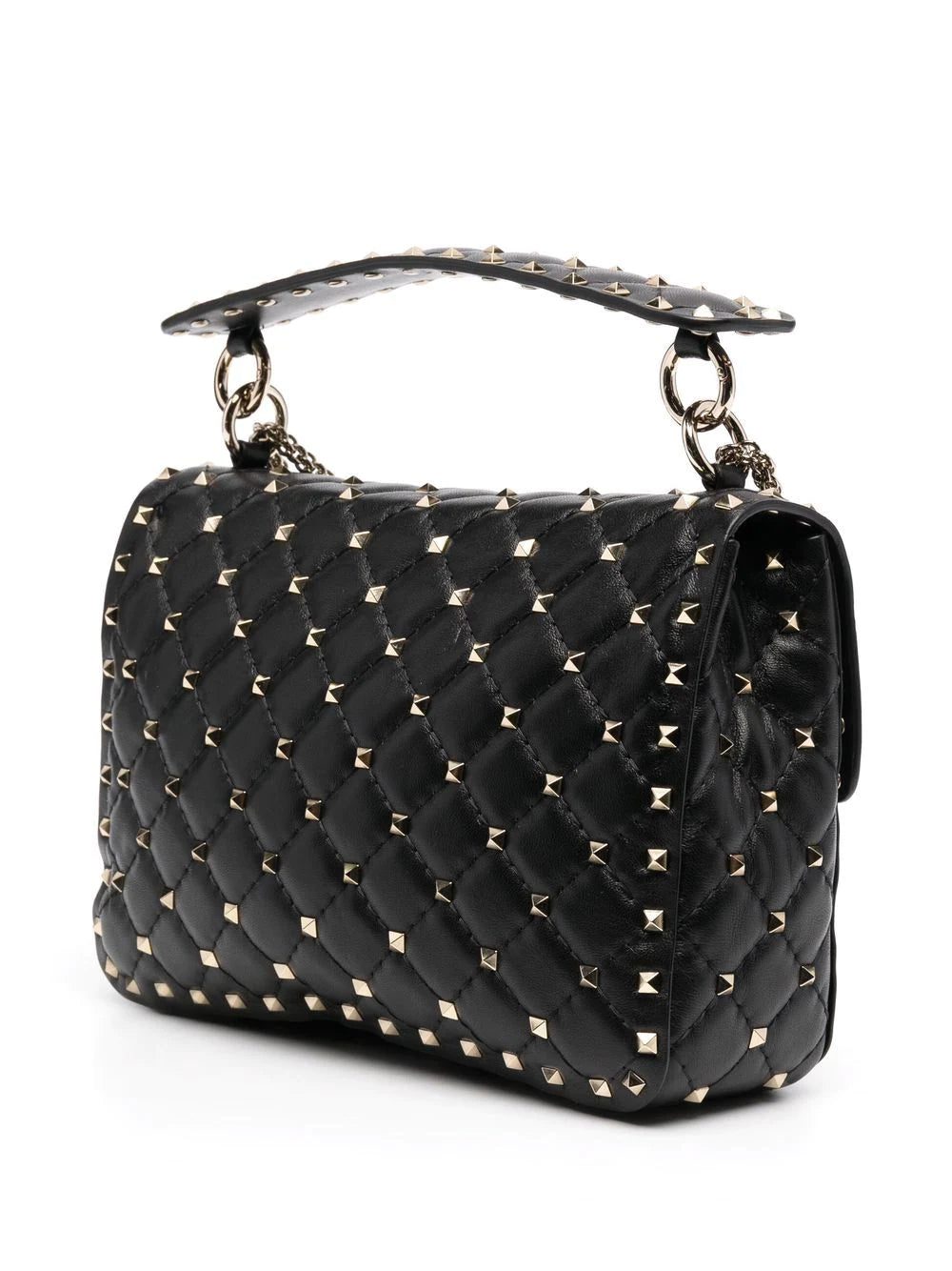 Crafted from soft leather, this Valentino Garavani shoulder bag is detailed with the brand's iconic Rockstud detailing. In a gold-tone hue, they contrast against the piece's black colourway for a lively finish.