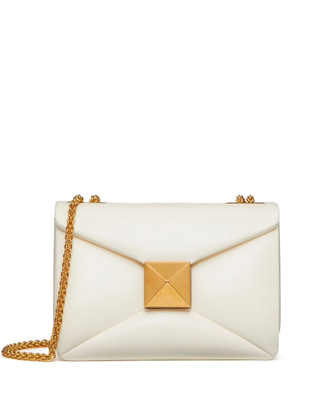 Introduced for SS22, Valentino Garavani's One Stud bag is defined by its envelope silhouette and statement Rockstud embellishment at the front, an iconic house motif. Crafted from soft leather in Italy, this accessory can be worn across the body or at the shoulder thanks to its adjustable chain-link strap.