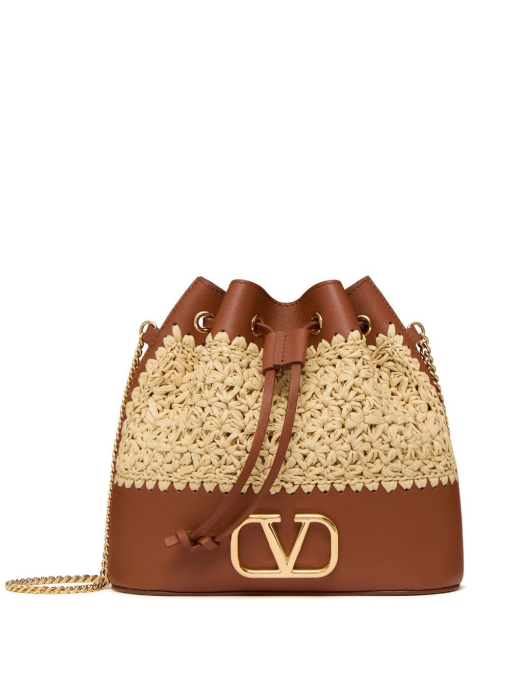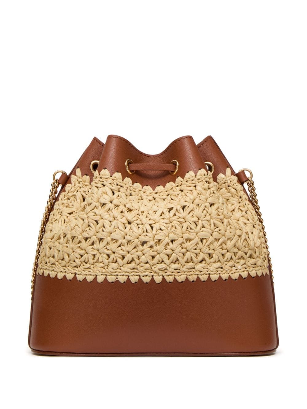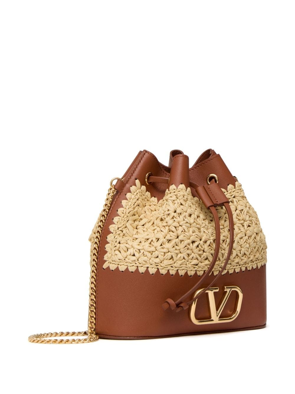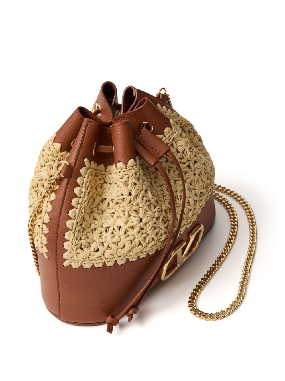raffia leather bucket mini bag