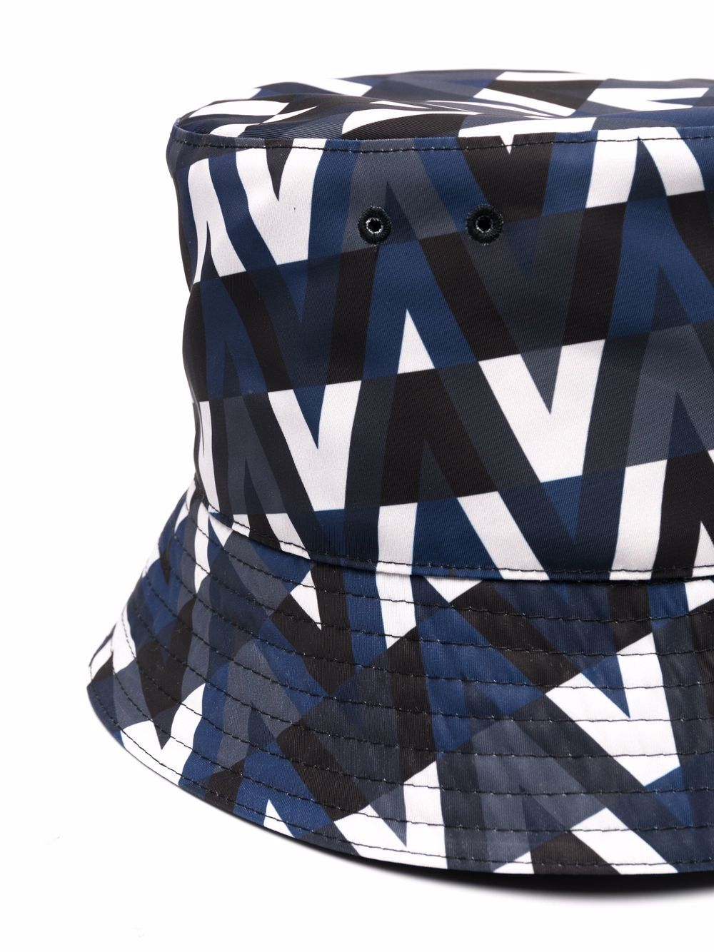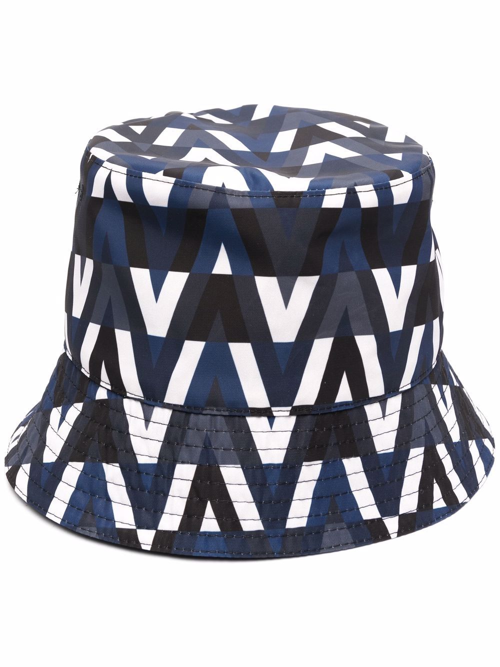 The Optical Valentino print, in black, blue and white, grabs the attention of this bucket hat. The accessory has a reversible design and comes with an embroidery logo on the inside.