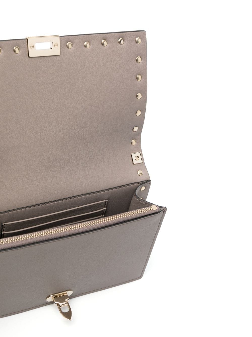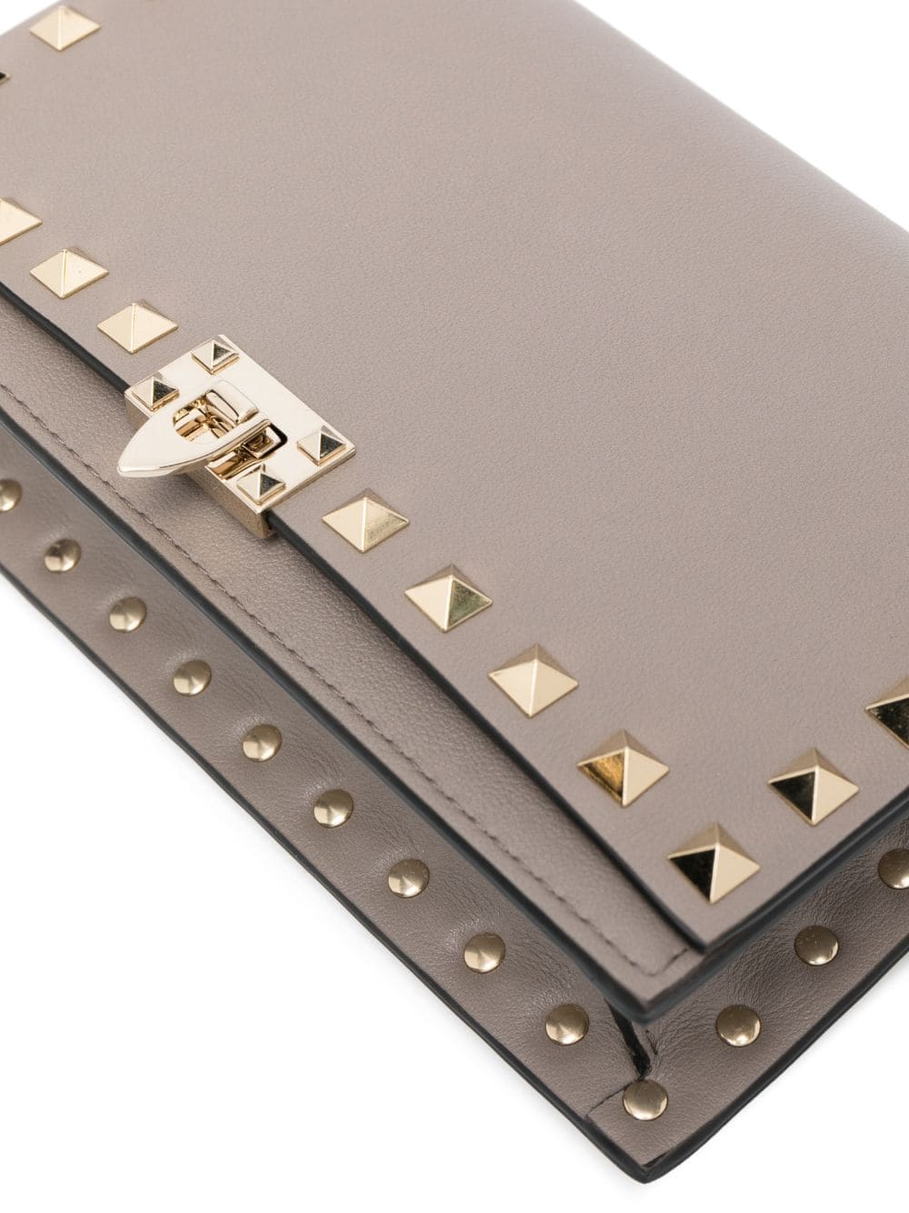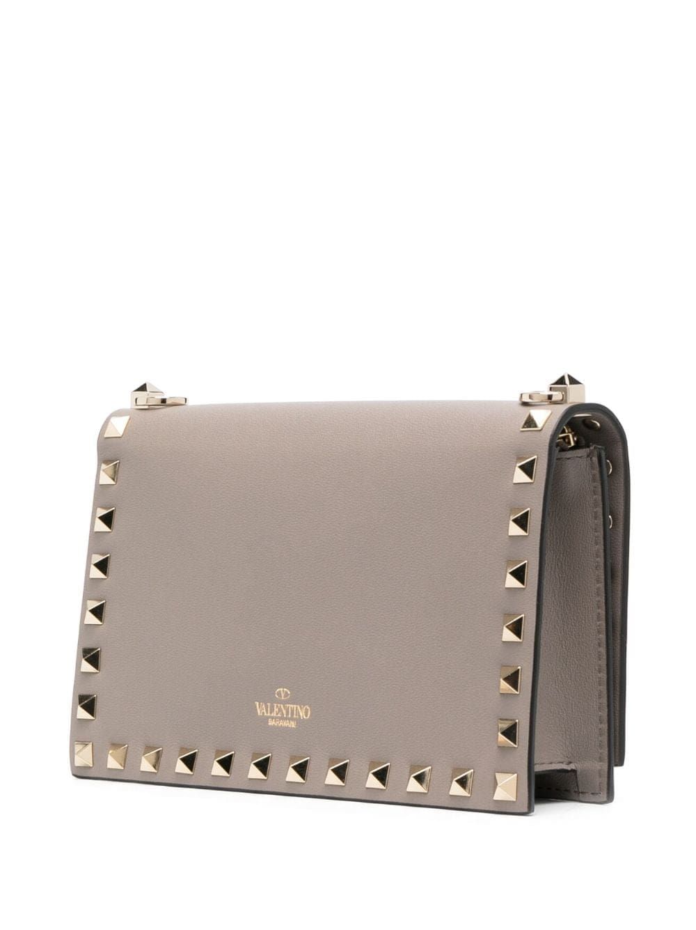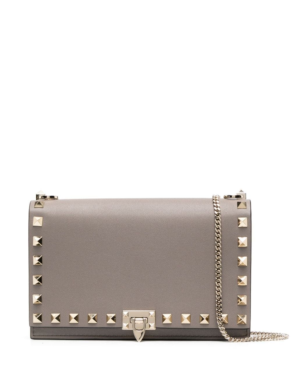 Created to represent the 'bugnatos' seen on palazzo-style buildings in Rome, Valentino Gavarani's Rockstud motif is an instantly recognisable house code for the Italian brand and can be seen here adorning this crossbody bag. Crafted from leather in Italy, its pebbled texture enriches the foldover construction, while a chain-link strap contrasts with some more gold-tone glow.
