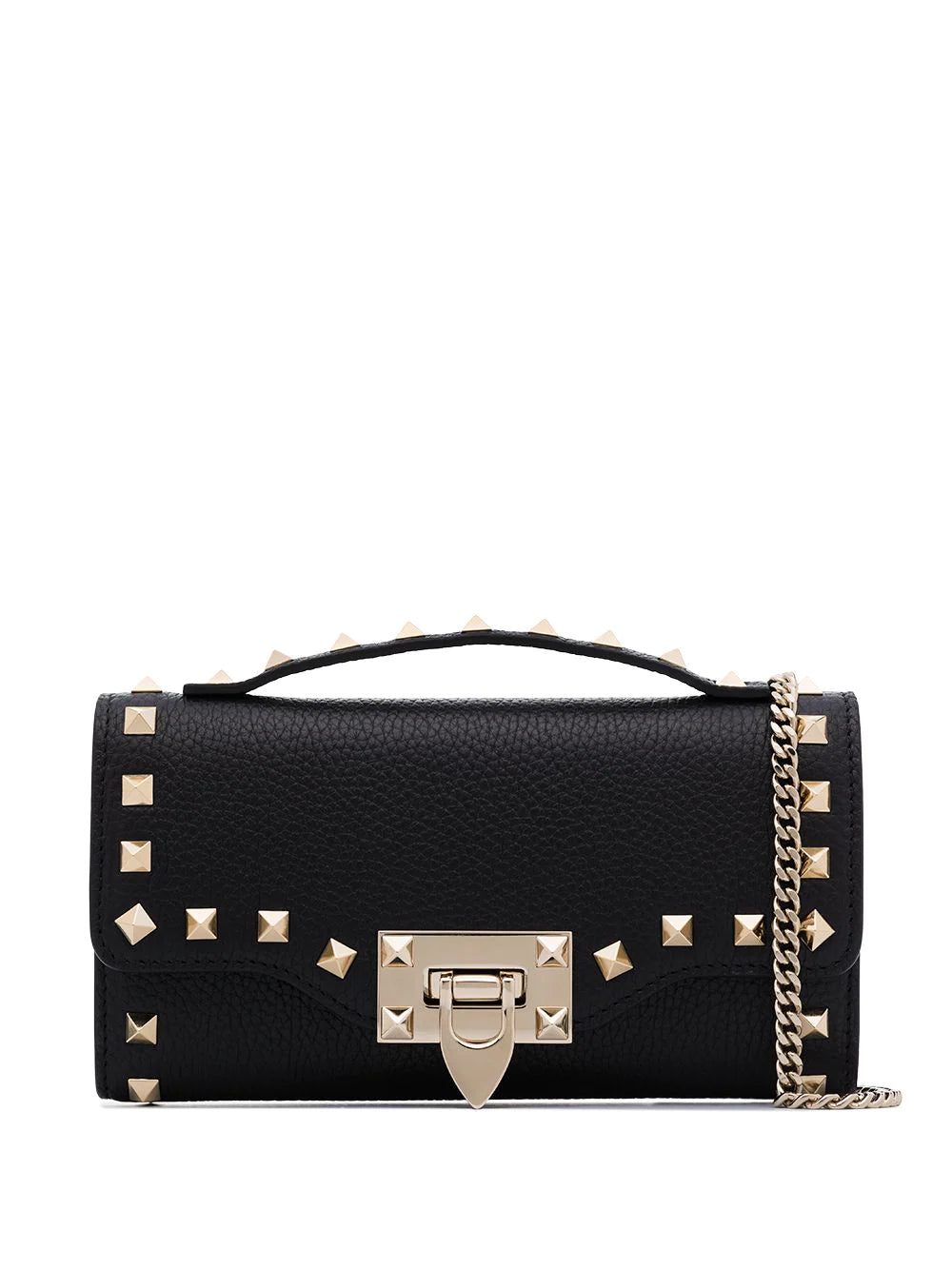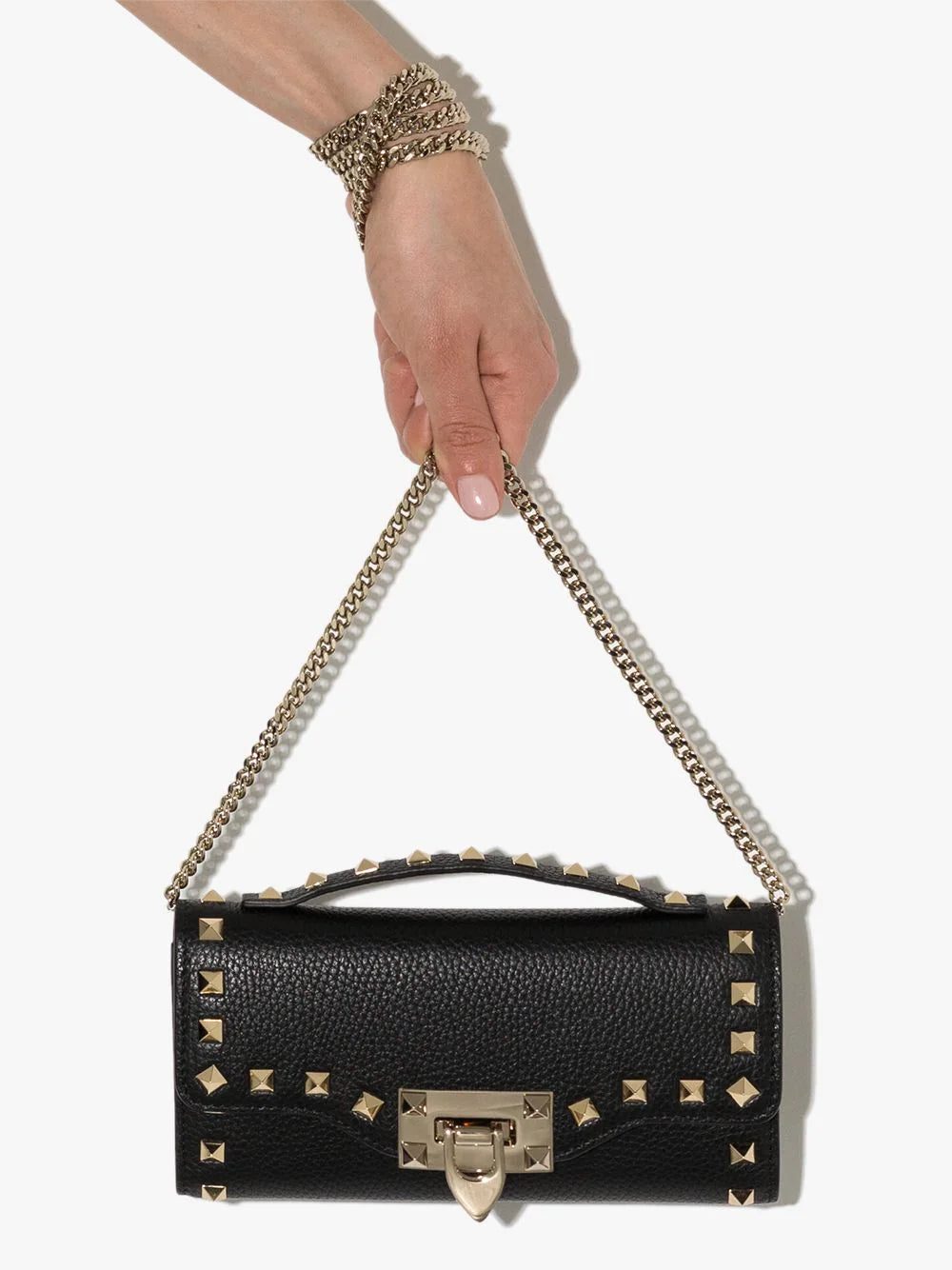 Valentino Garavani's clutch features the brand's iconic Rockstuds - a brand mainstay since 2010. The pyramid studs trace this black iteration, giving it a polished and signature finish.
