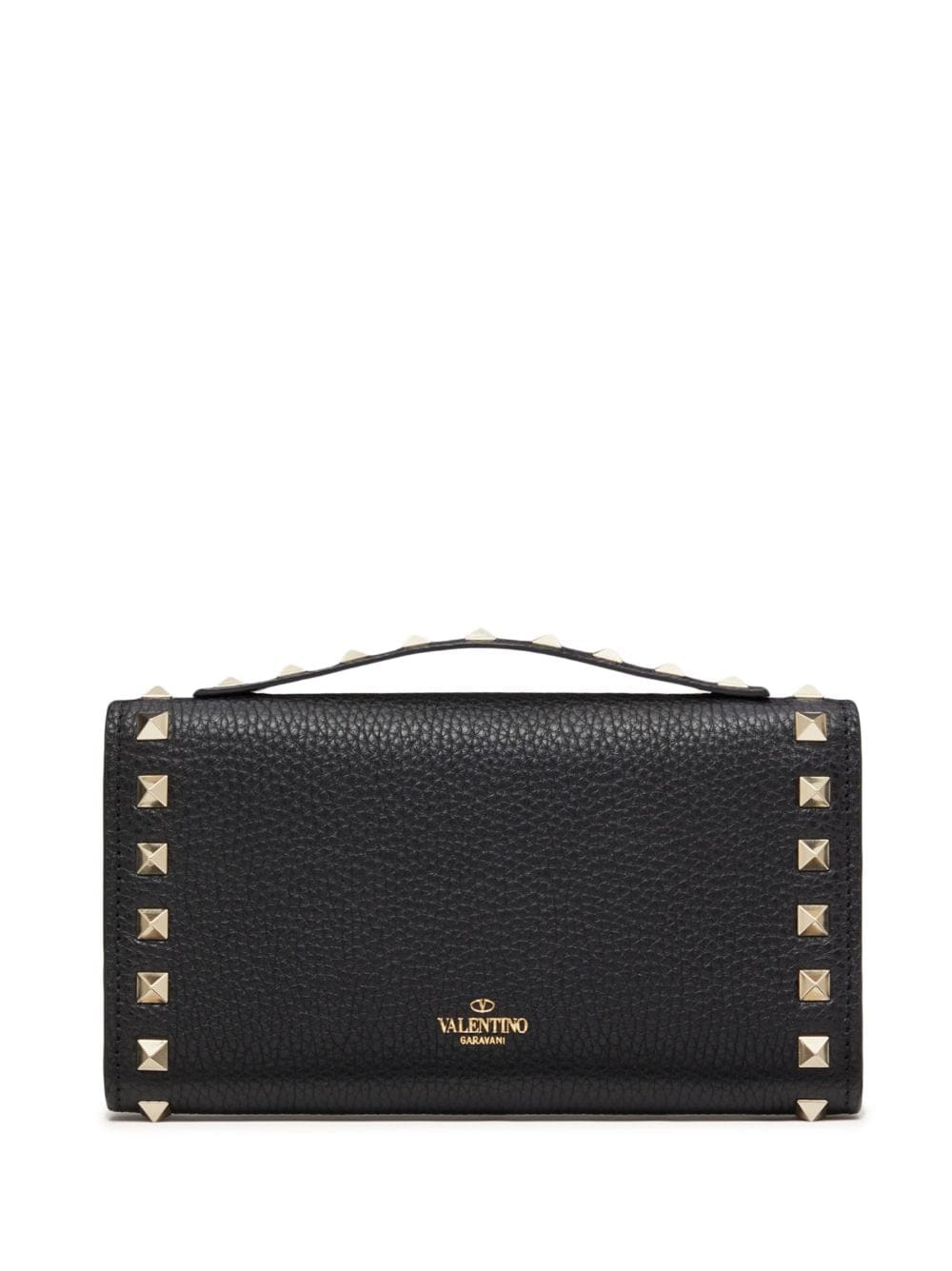 Valentino Garavani's clutch features the brand's iconic Rockstuds - a brand mainstay since 2010. The pyramid studs trace this black iteration, giving it a polished and signature finish.