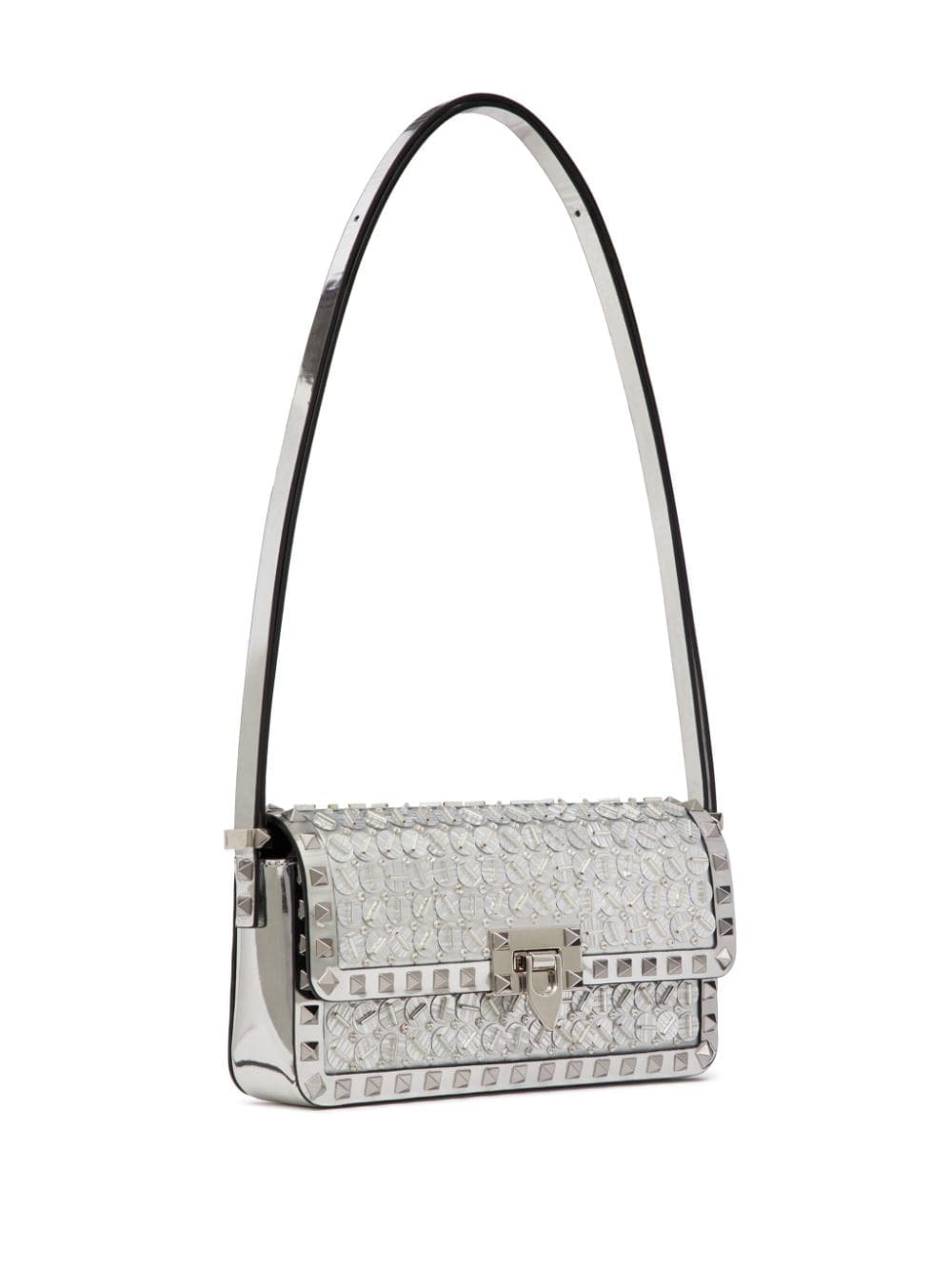 A signature style, Valentino Garavani's Rockstud23 E/W shoulder bag is back for the new season covered in sequins. Crafted from leather, it is defined by its rectangular shape in silver tone.