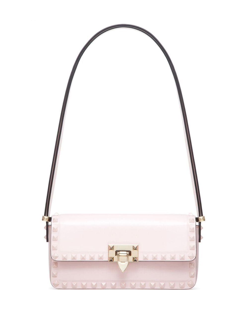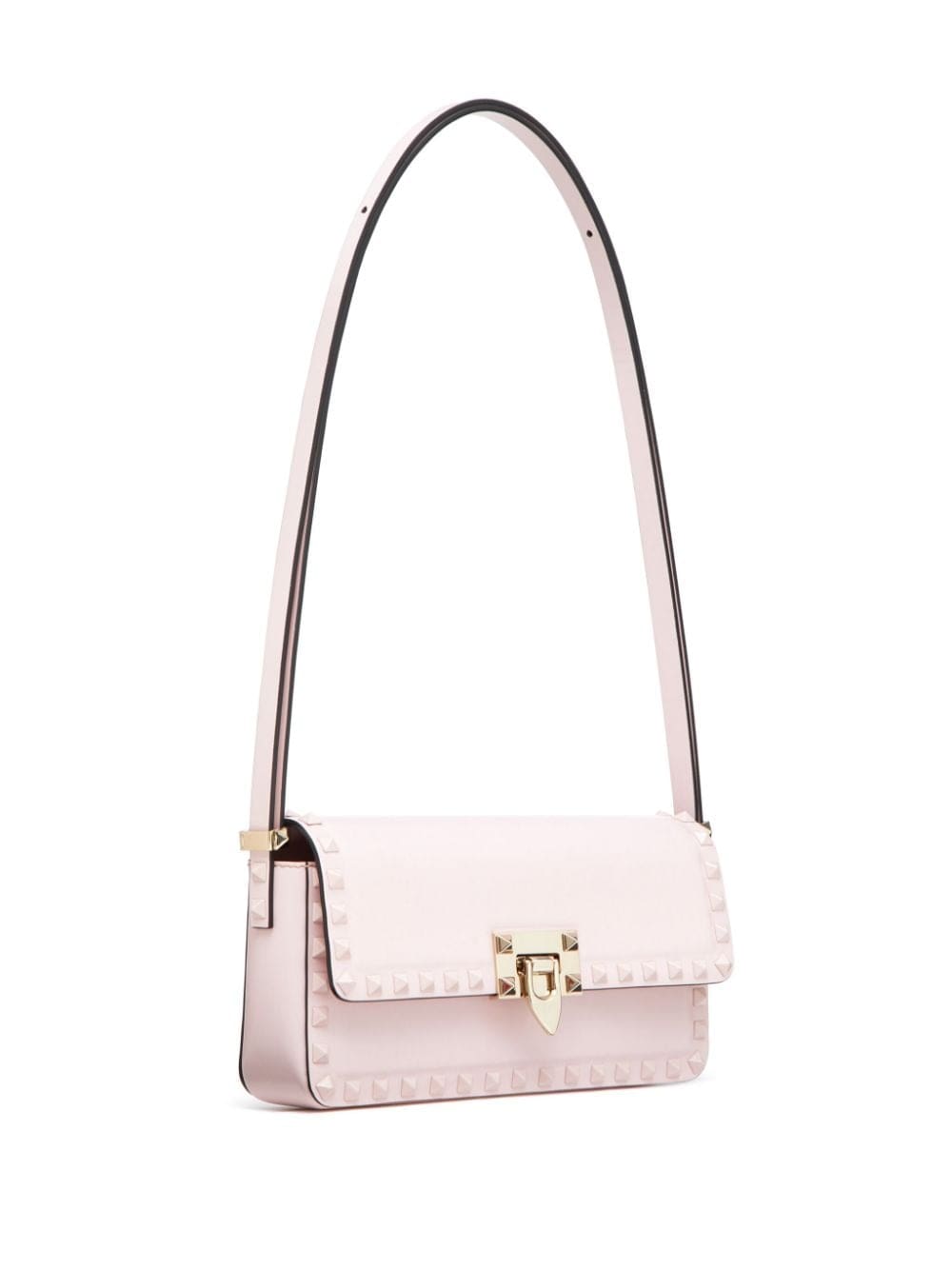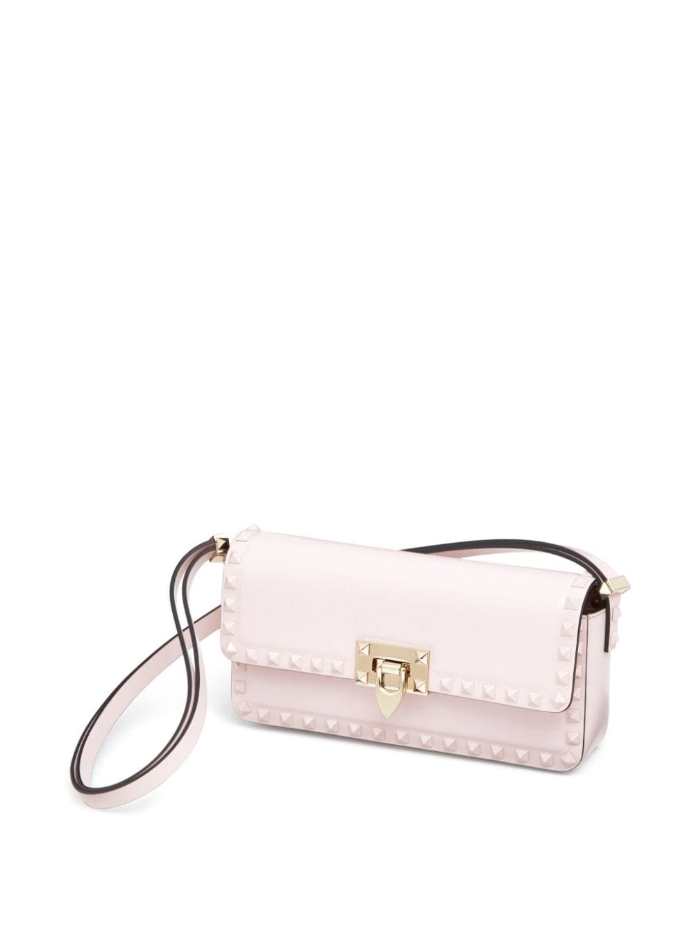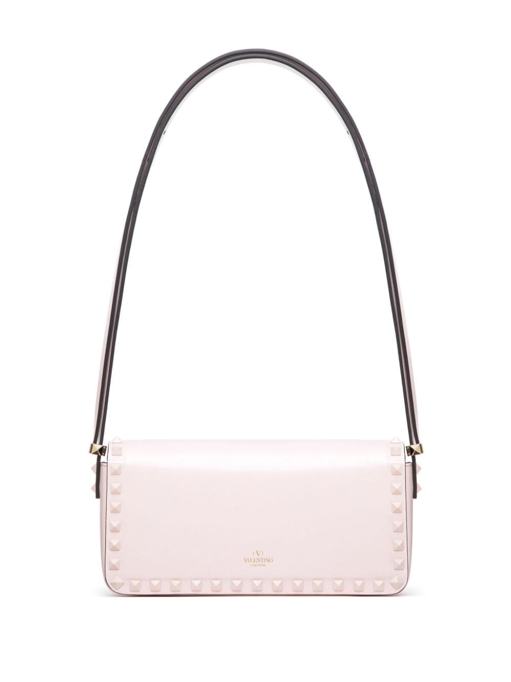 A blush pink hue elevates the geometric shape of Valentino Garavani's Rockstud23, made in Italy from smooth calfskin and emblazoned with gold-tone Rockstuds throughout.