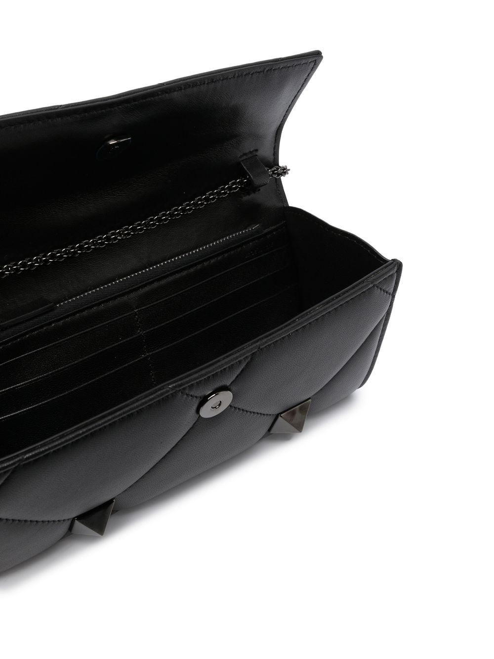 Valentino Garavani's Roman Stud was introduced in 2020 as an enlarged version of the brand's iconic Rockstud embellishment. The updated design is presented here in an all-black iteration for AW22.