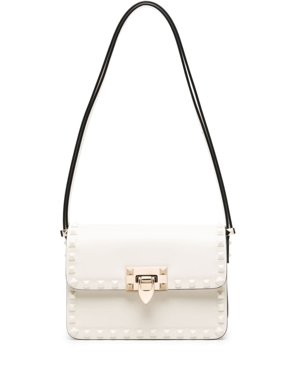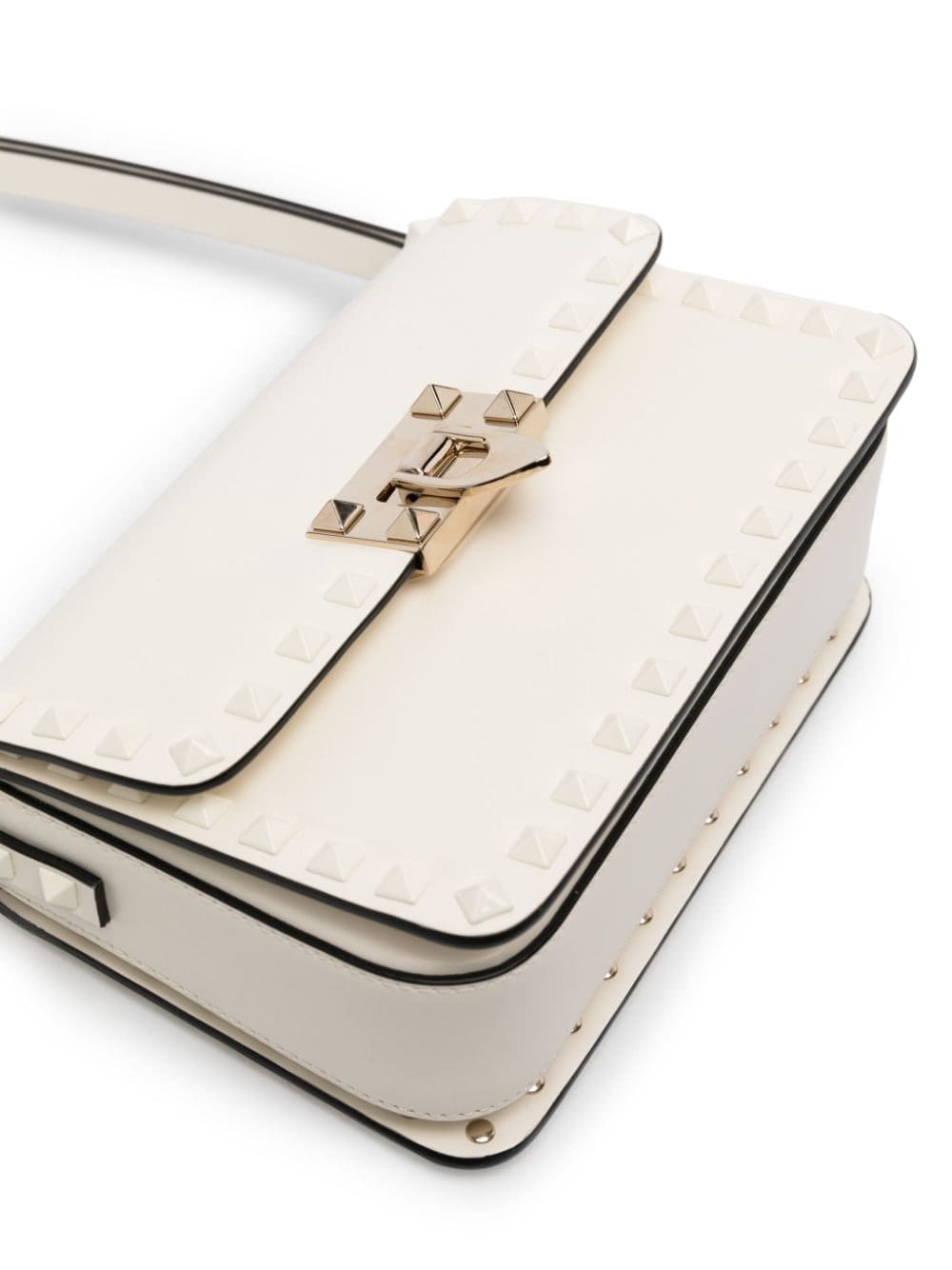 Inspired by the 'bugnatos' seen on Roman palazzo-style buildings, the Rockstud is synonymous with Valentino Garavani. The embellishments outline the compact silhouette of this leather bag, which is suspended by an adjustable shoulder strap.