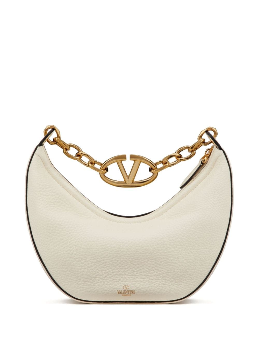 Valentino Garavani's VLogo Moon shoulder bag is named after its crescent-shaped body and signature logo charm at the chain-link top handle. This small iteration is crafted from white leather to a softly structured silhouette and it benefits from a detachable, adjustable strap that allows it to be worn in multiple ways.