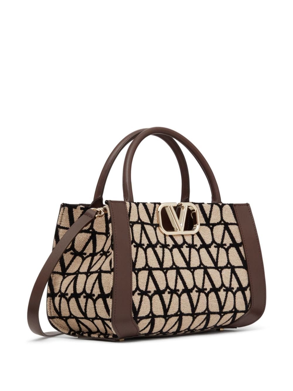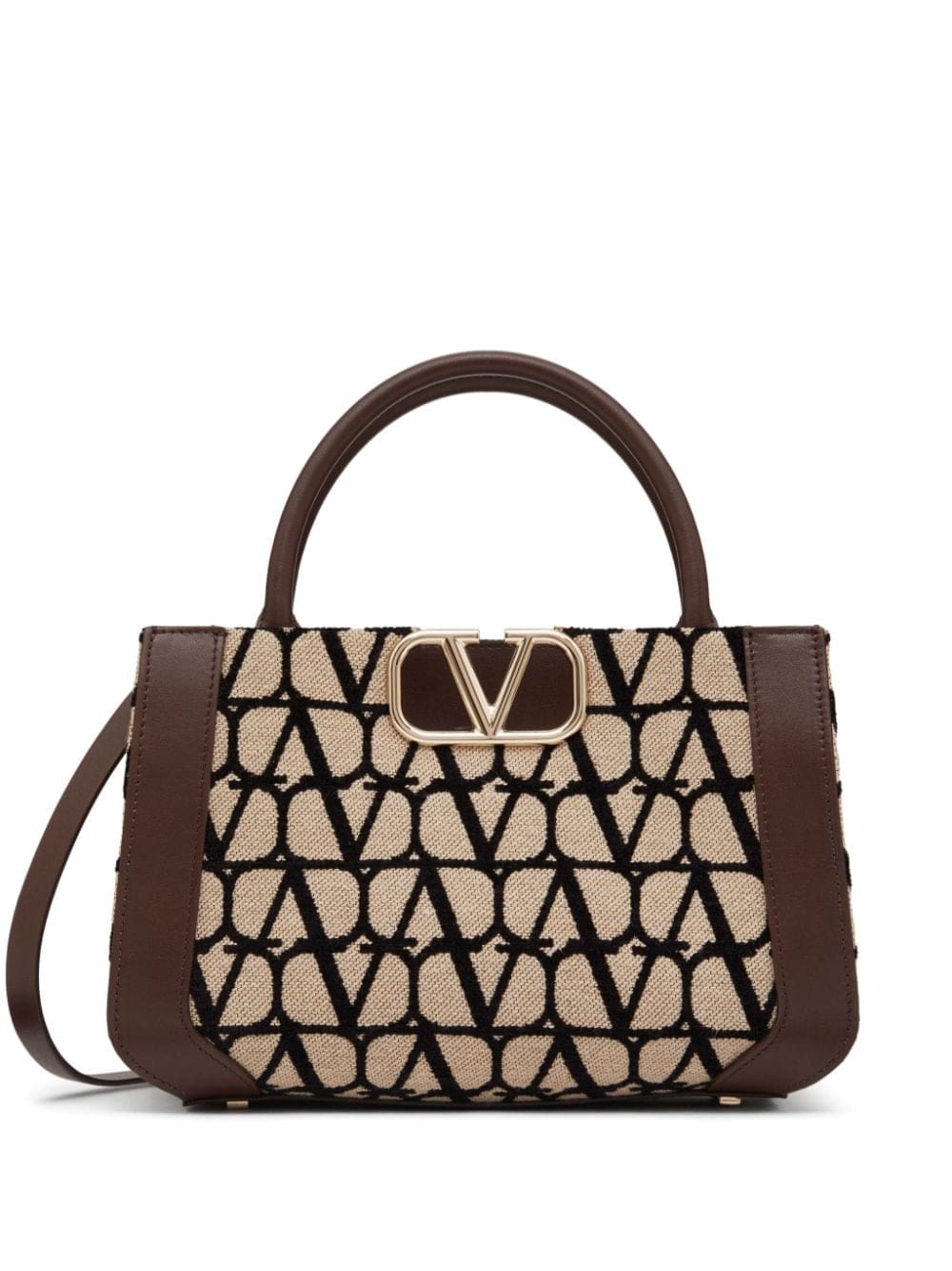 This tote bag by Valentino Garavani is made with leather trims and the brand's iconic Toile Iconographe in canvas. It has one internal slip pocket and a metallic VLogo Signature embellishment on the handle.