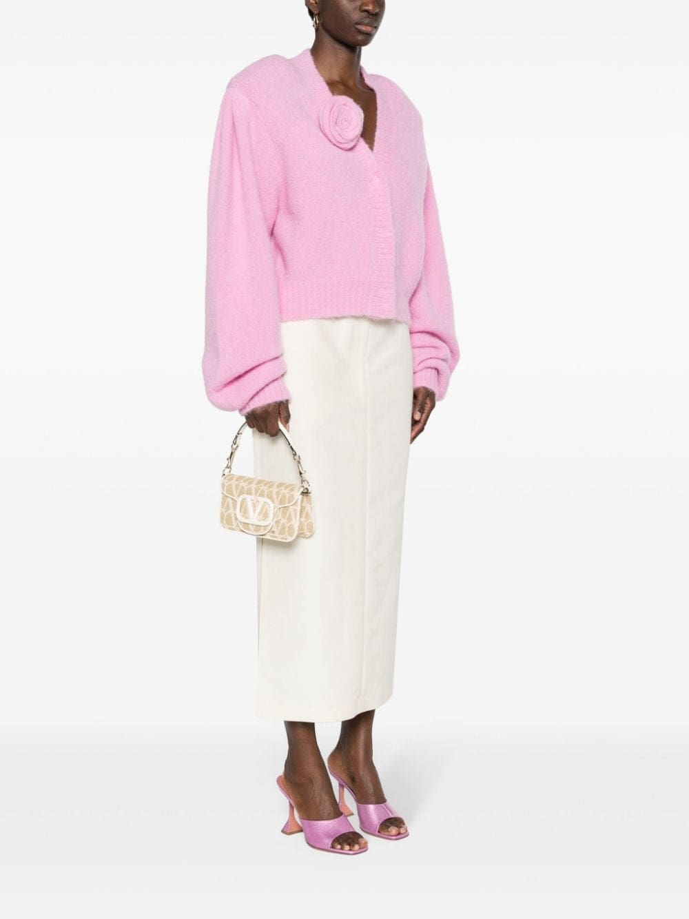 The leather-covered VLogo at the front of this Valentino Garavani Locò bag is the original inspiration behind the Toile Iconographe pattern that’s woven across it. It’s crafted from faux raffia to a compact silhouette with interchangeable straps and a leather patch pocket at the back.