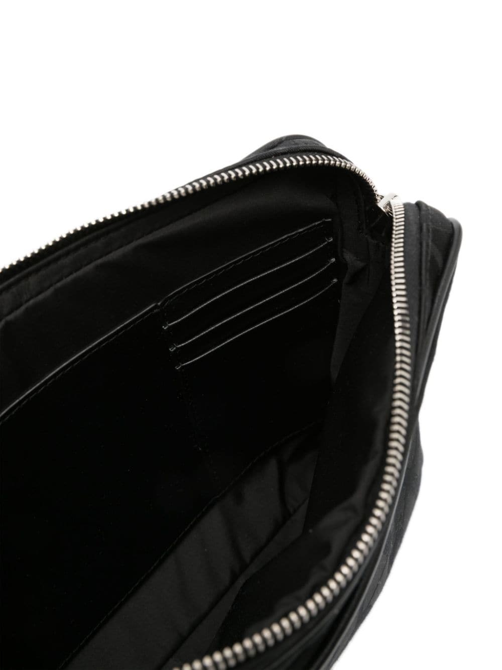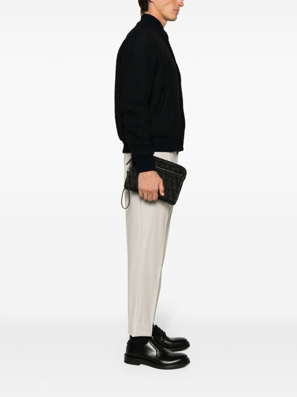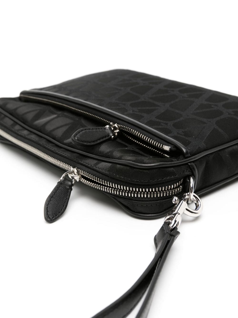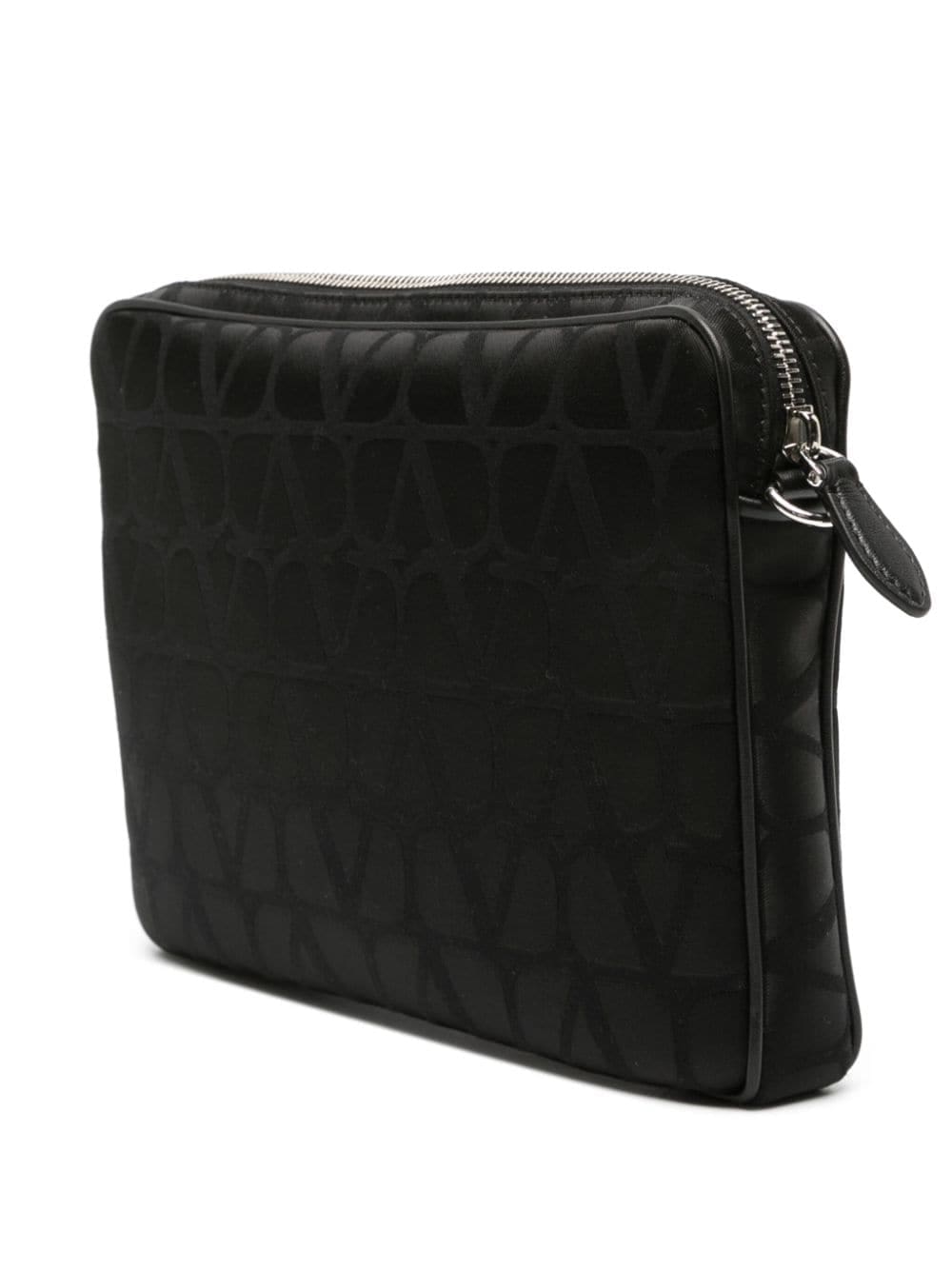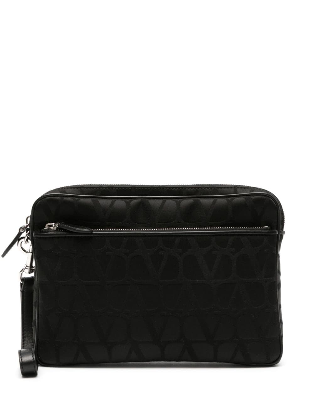 A reinterpretation of the house's VLogo Signature, the Toile Iconographe motif adorns this clutch bag in an all-black design. It's complete with a practical detachable wrist strap.