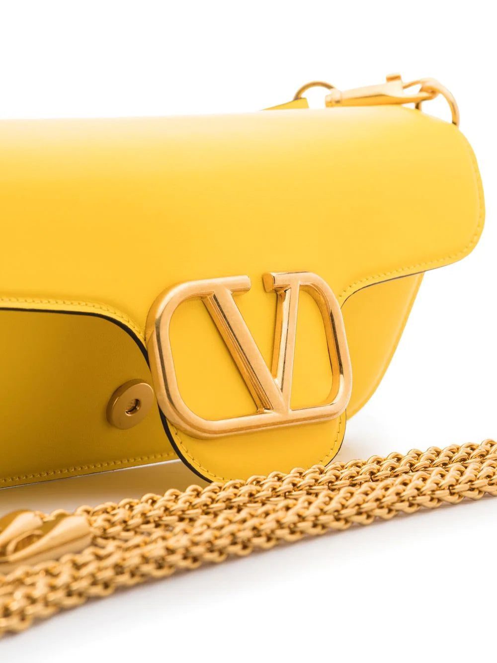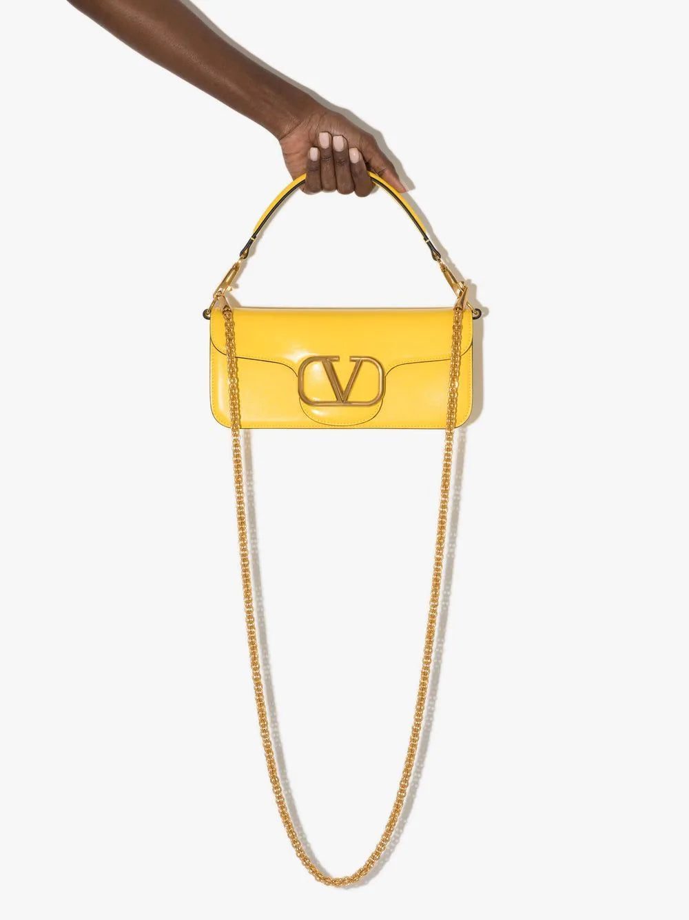 Valentino Garavani's clutch honours the brand's iconic VLogo Signature - this yellow leather iteration is accented with a gleaming gold-tone plaque at the centre. A versatile design, it can also be worn over one shoulder thanks to the detachable strap.