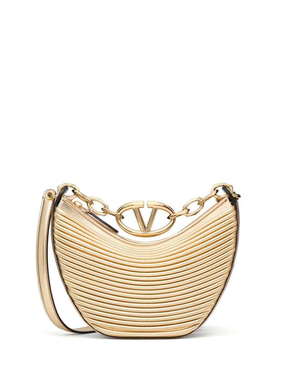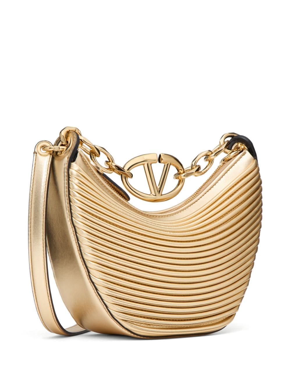 VLogo metallic leather shoulder bag