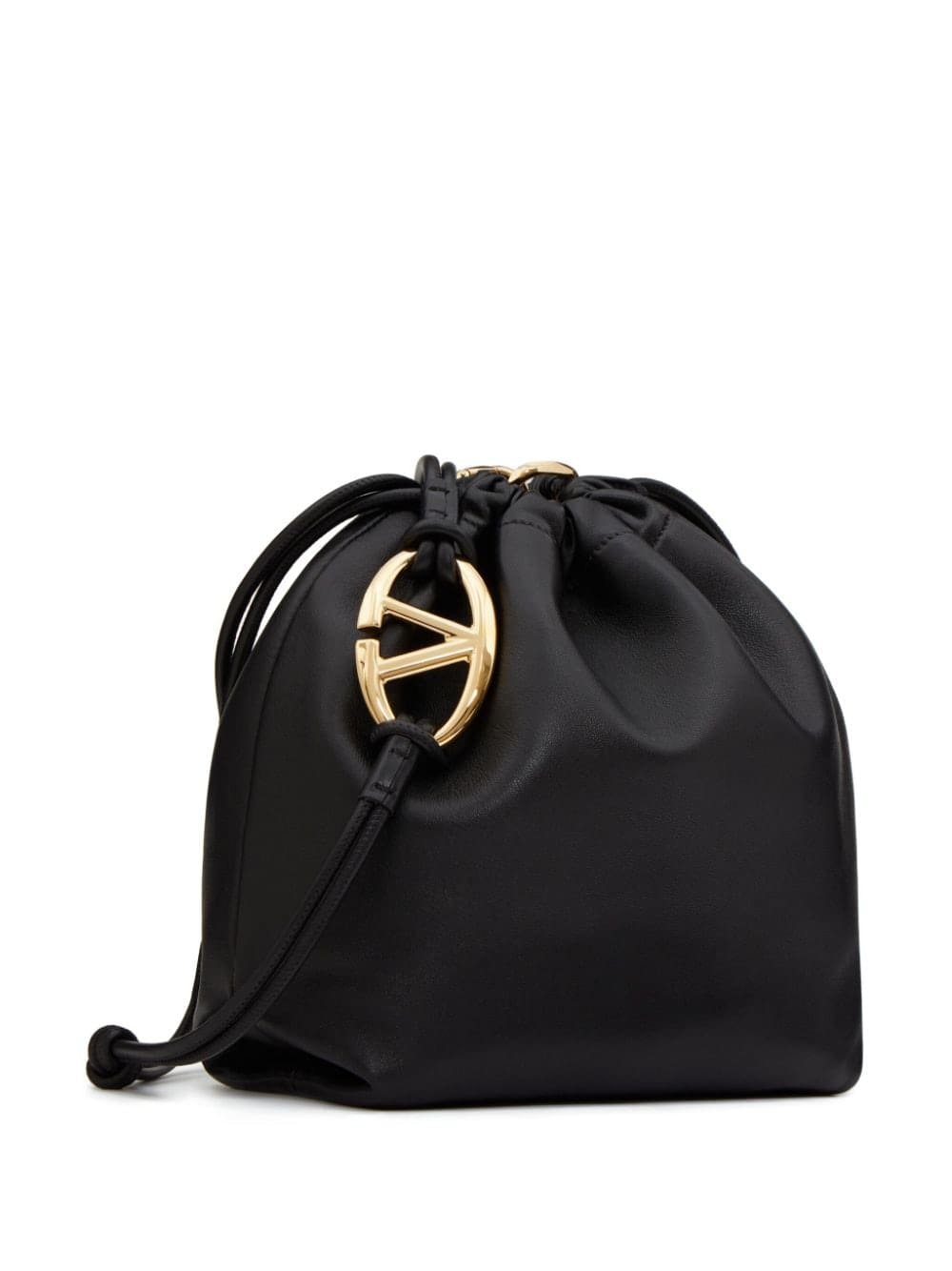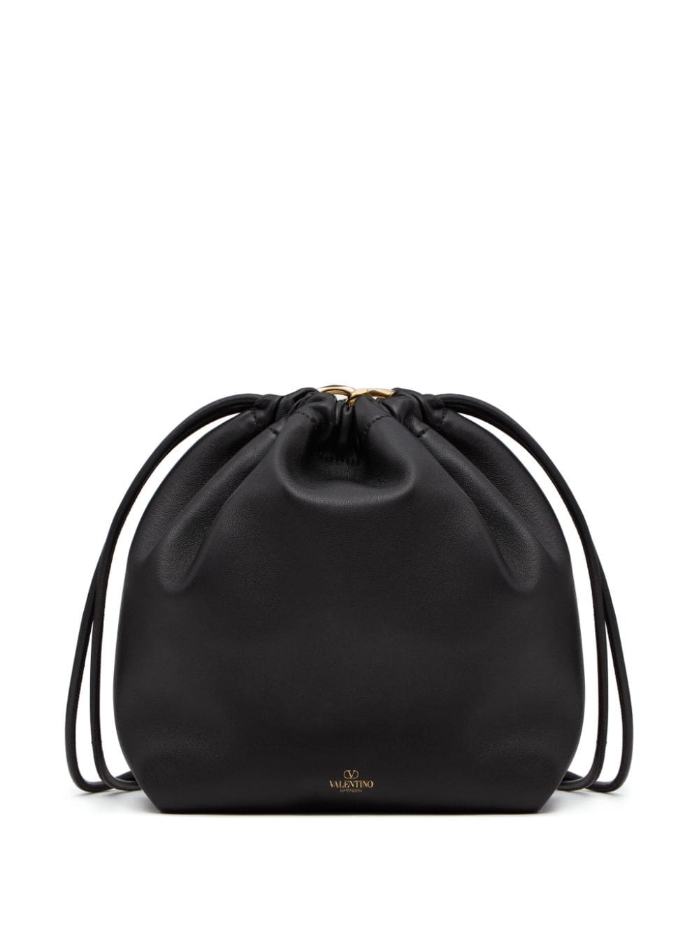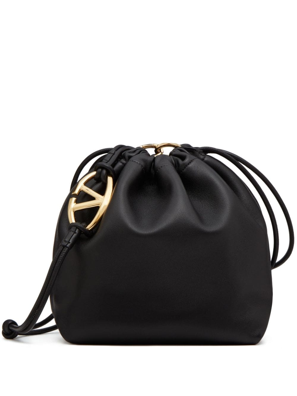 Valentino Garavani’s VLogo debuted in 1968 at the Sala Bianca show and still holds its relevancy today. A gold-tone version details the shoulder strap of this drawstring bag.
