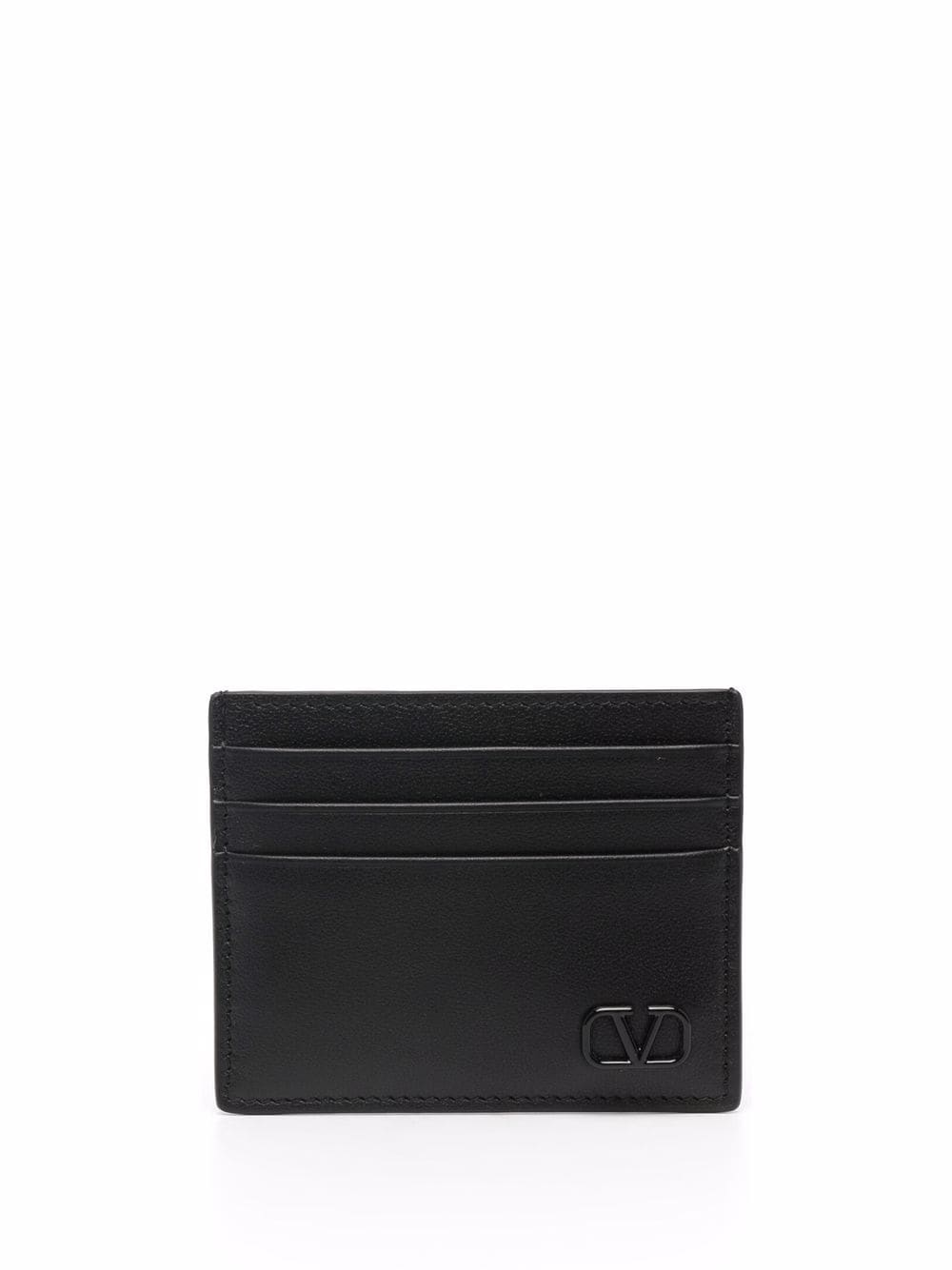 Vlogo Signature cardholder from VALENTINO GARAVANI featuring black, calf leather, VLogo Signature, card slots and central flat pocket.