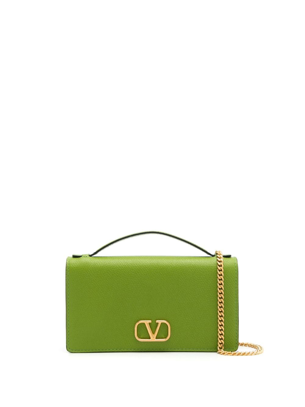 A bright green hue makes a statement of this compact Valentino Garavani bag. It is highlighted by a grained leather construction, while gold-tone details like the VLogo Signature add a refined touch.
