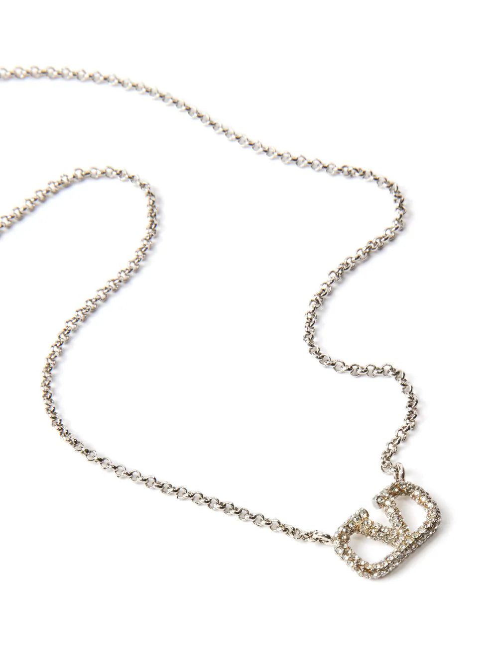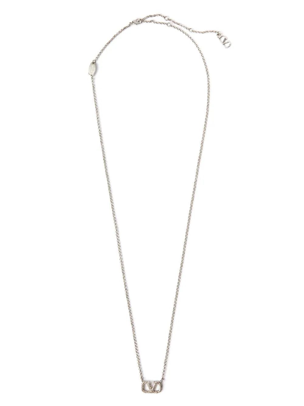Valentino Garavani spotlights the brand's VLogo Signature motif. Here, a silver-tone version is strung from a slim adjustable chain and encrusted with miniature crystals.
