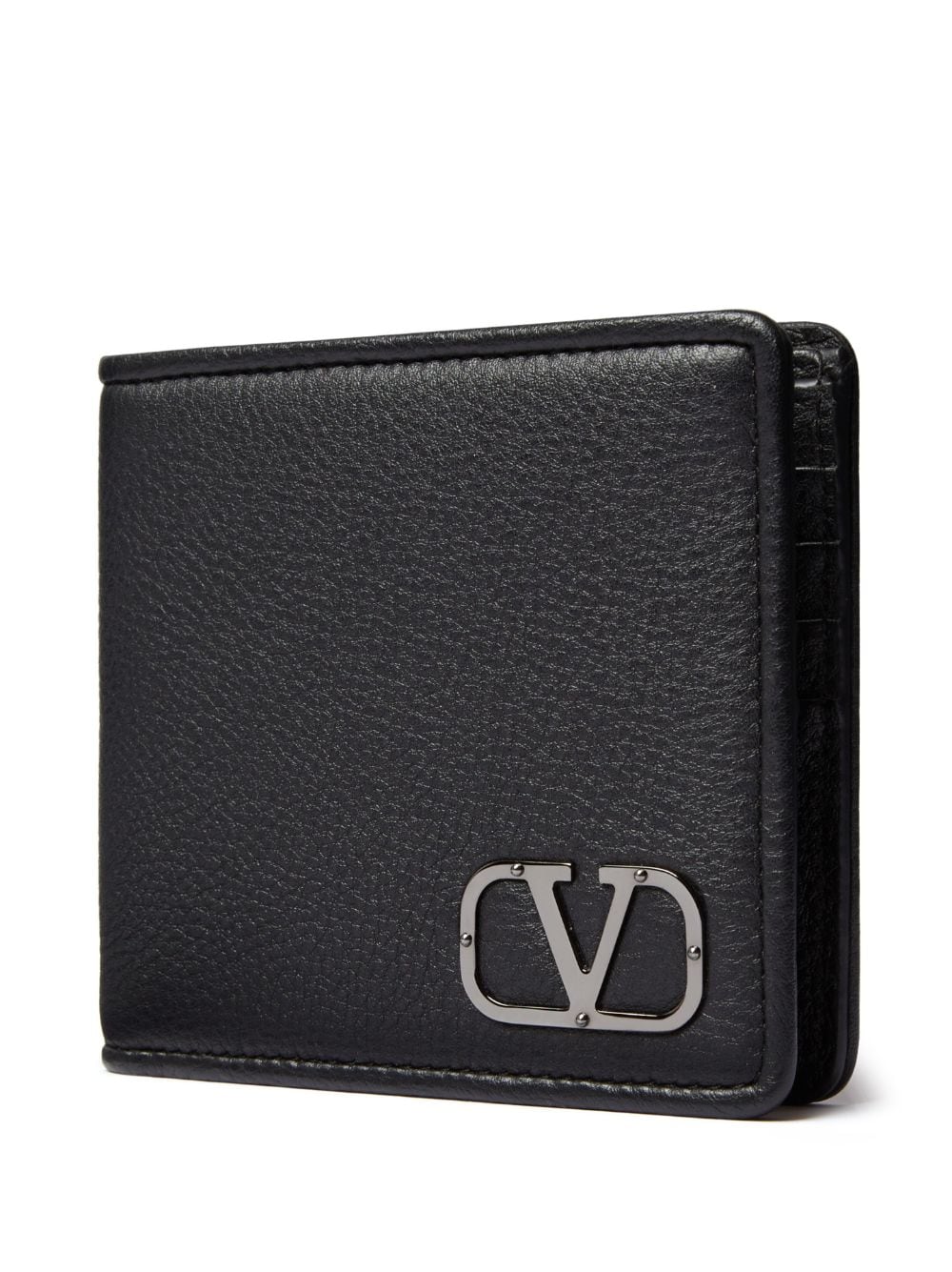 Valentino Garavani's VLogo Signature is one of the brand's most iconic trademarks. Here, it adorns this black bifold leather wallet, offering it an unmistakable look.