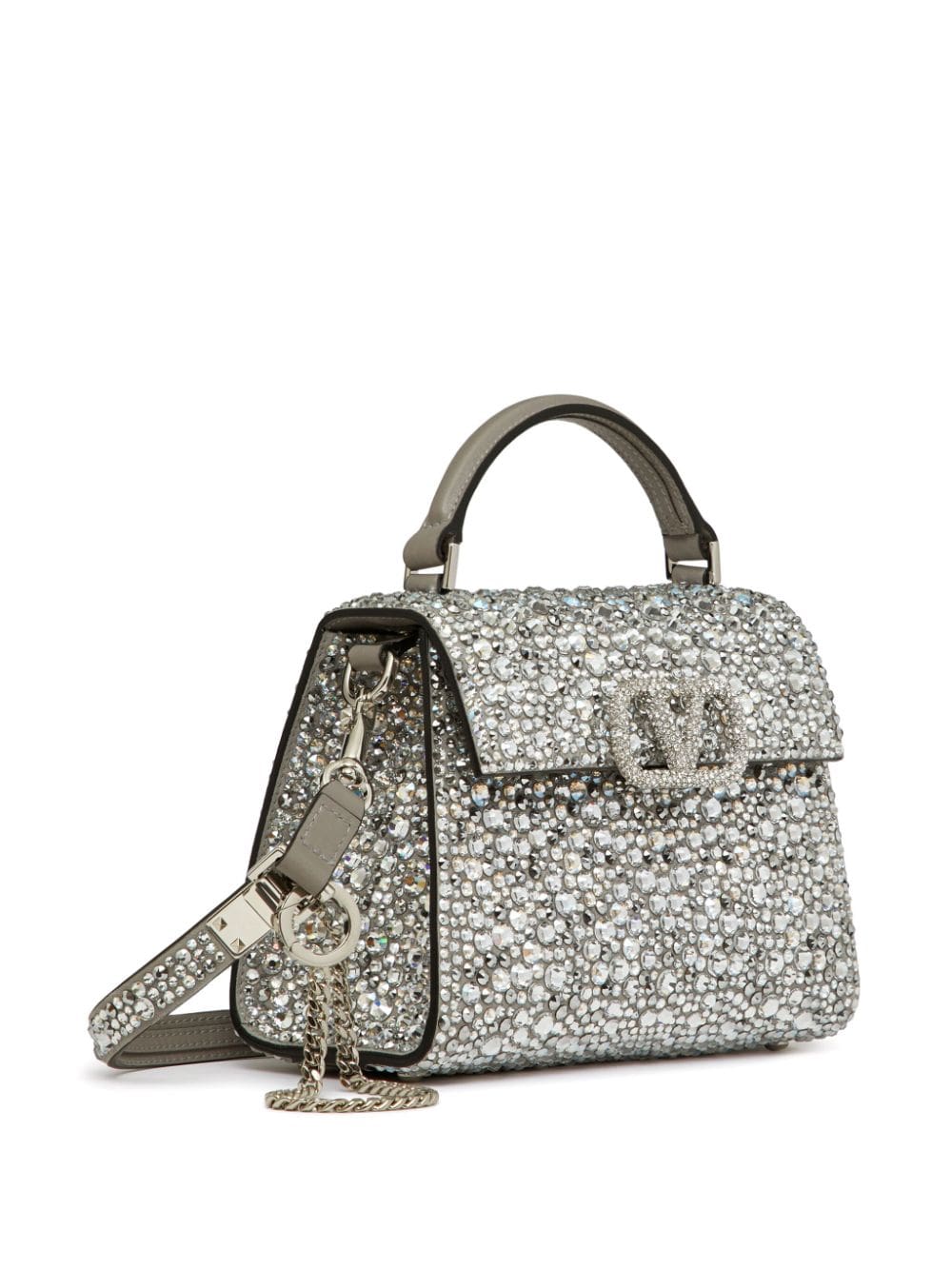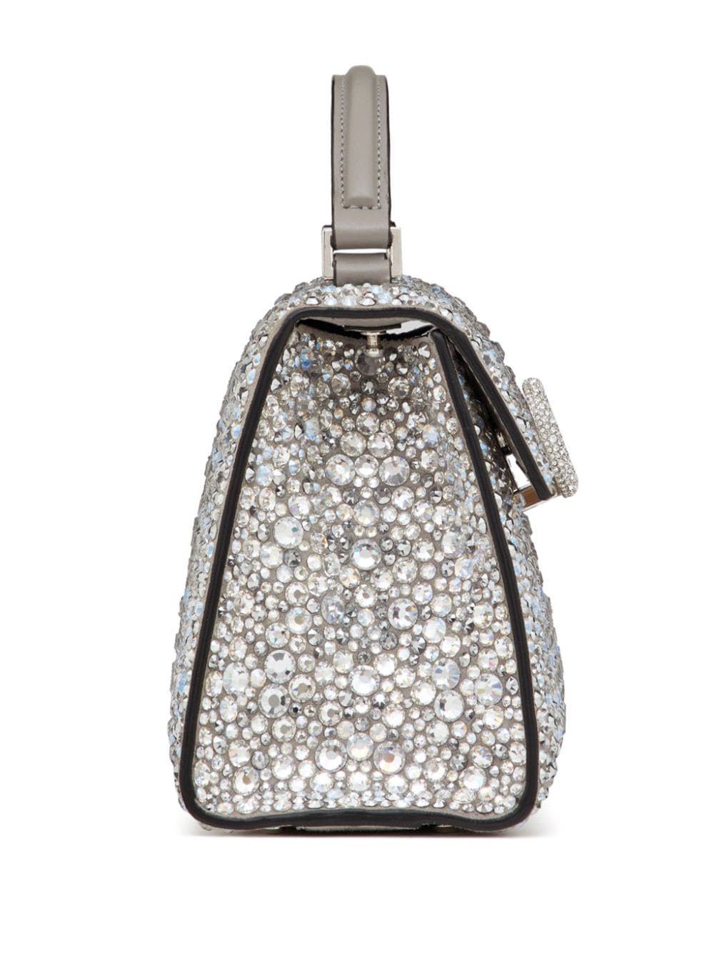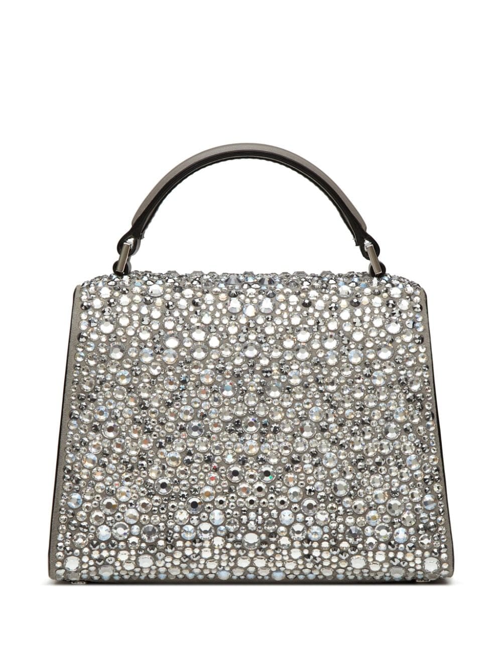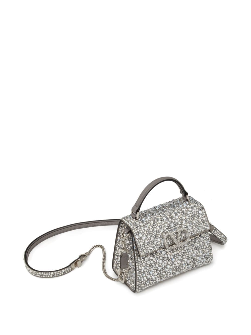 Covered in glistening glass crystals for an eye-catching finish, this mini tote from Valentino Garavani is crafted from smooth calf leather in Italy and boasts a recognisable Vlogo motif at the centre, specially adorned with Swarovski crystals. Its adjustable strap allows it to be worn across the body, on the shoulder or handheld.