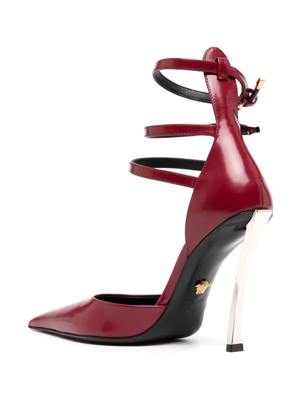 These leather sandals by Versace are characterised by a trio of buckle-fastening ankle straps. Meanwhile, true to the label's branding-focused style, this pair is detailed with a gold-tone Medusa head to the sole.