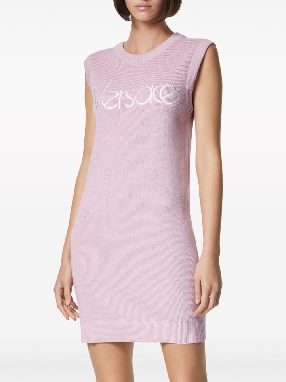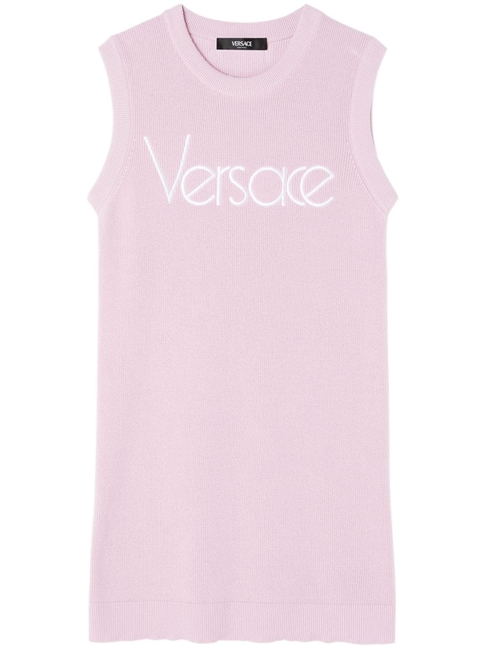 Spun from a soft blend of cotton to a finely ribbed knit, this light pink minidress looks to Versace's archival motifs. It's embroidered at the front with the house's updated take on its 1978 logo.