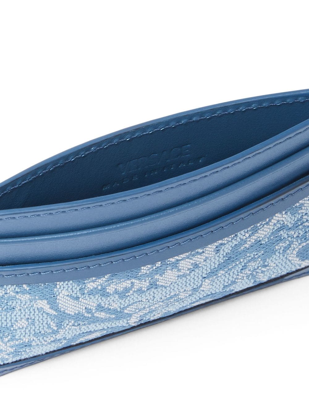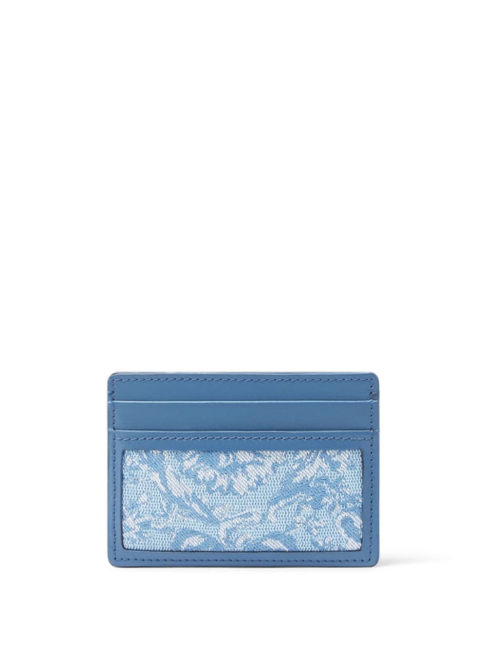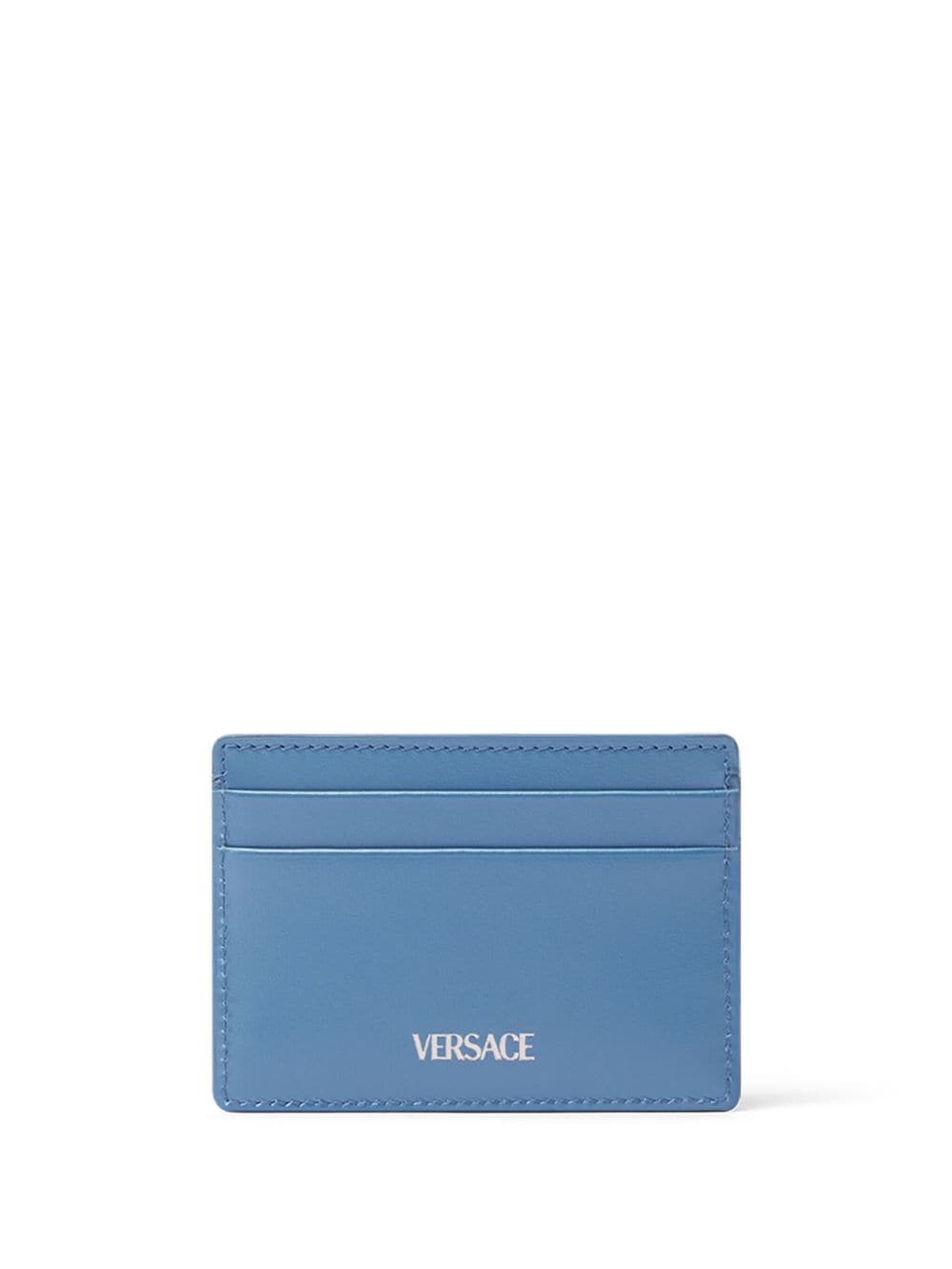 Crafted in Italy from smooth calf leather, this sleek cardholder from Versace is fitted with a Barocco-jacquard panel at the front for an instantly recognisable flair. It features four card slots and is emblazoned with silver-tone logo lettering.