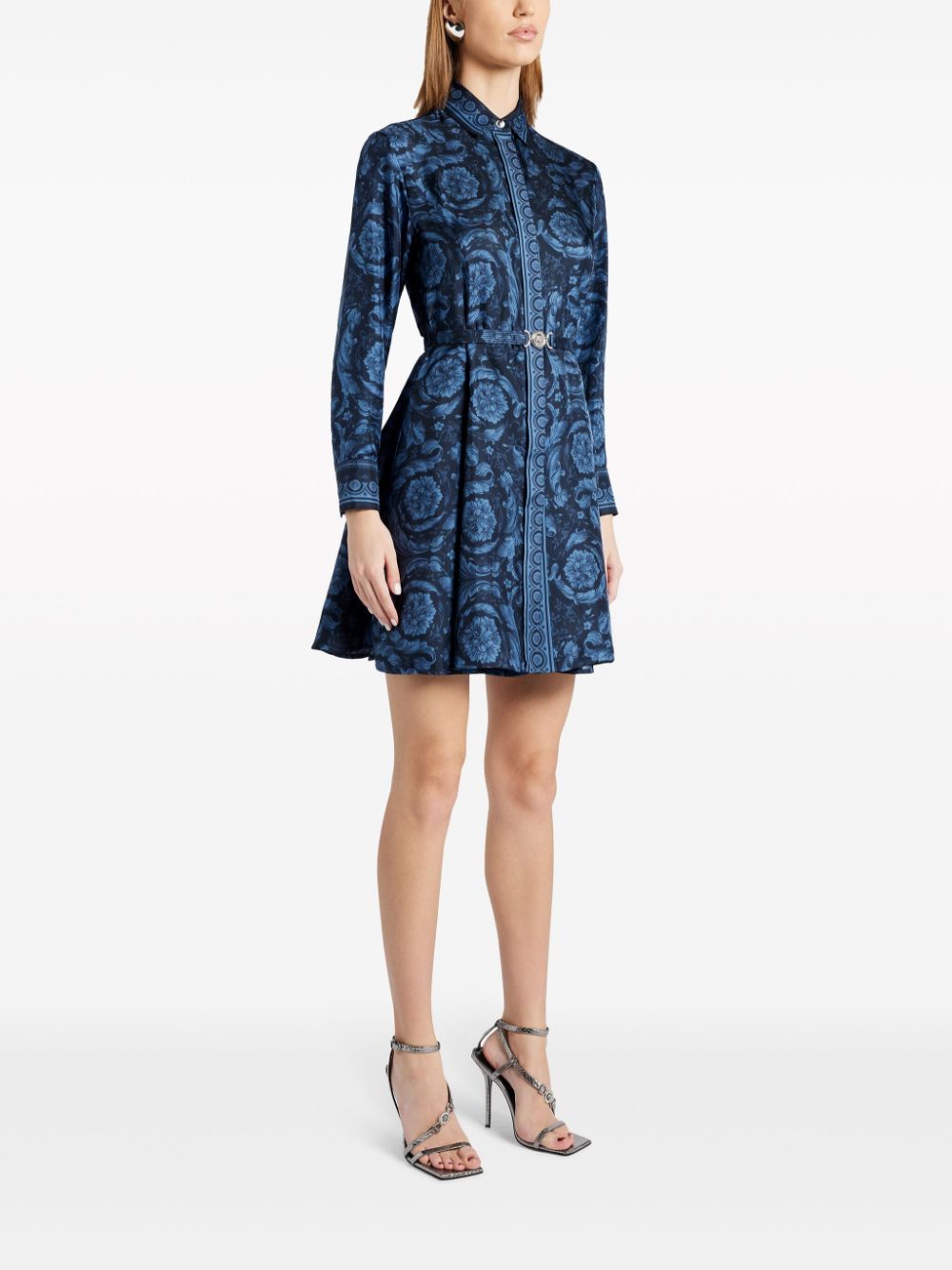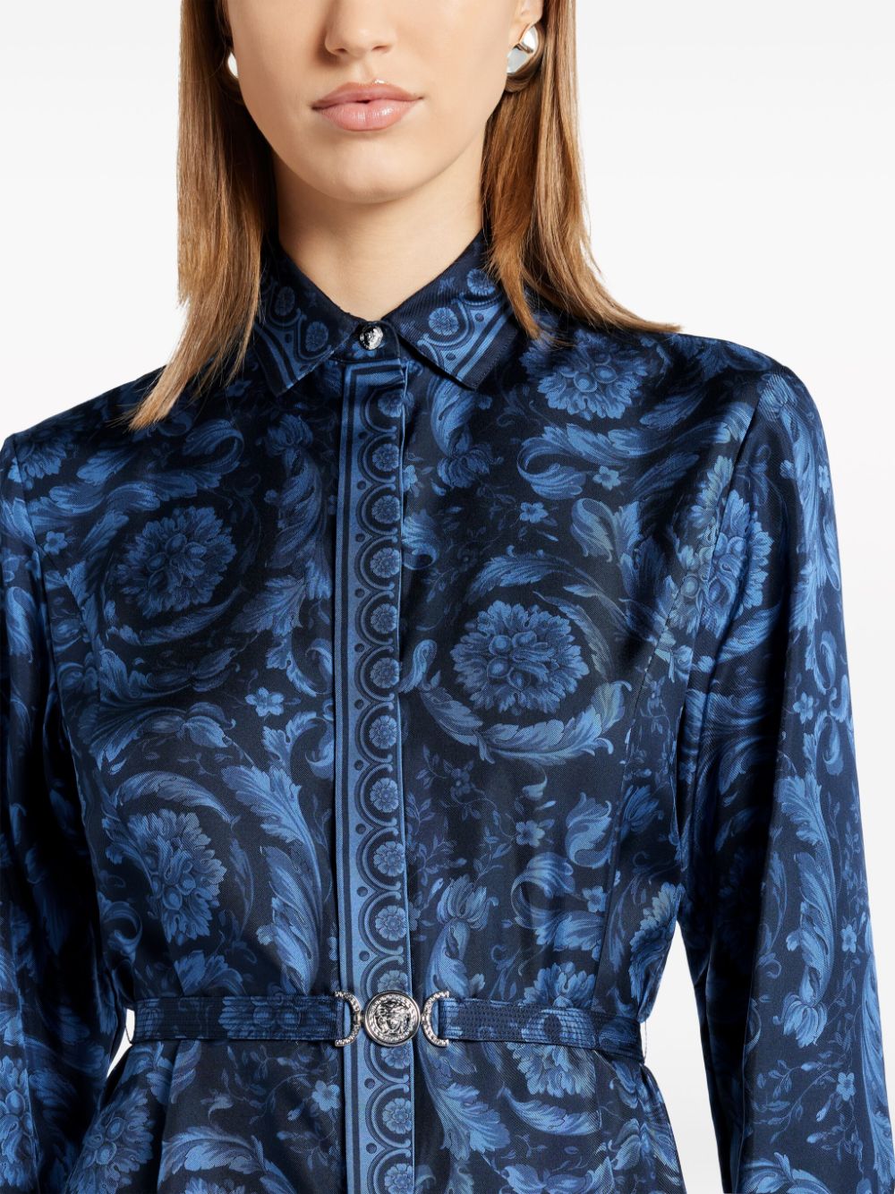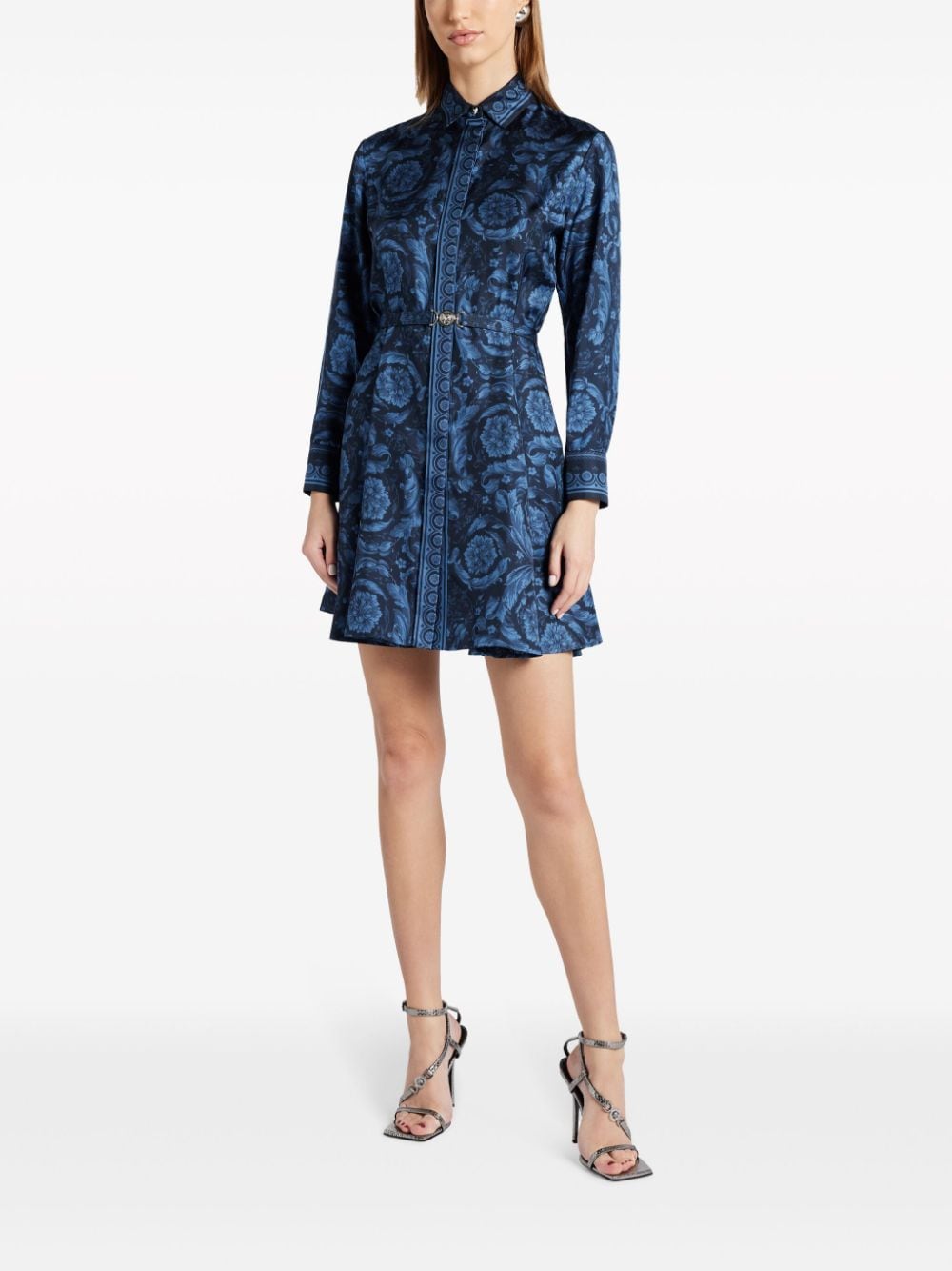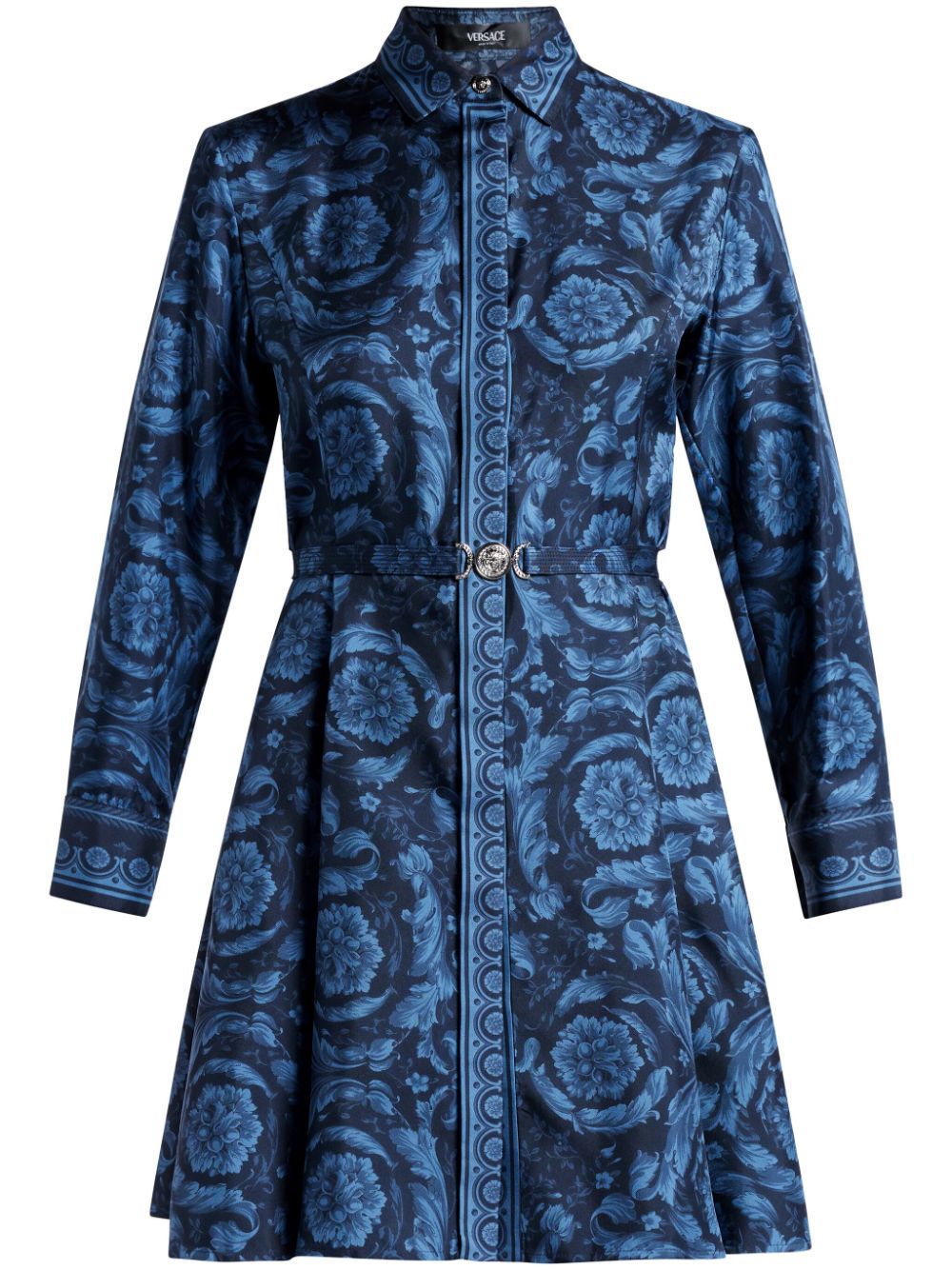 Barocco-print belted silk shirtdress