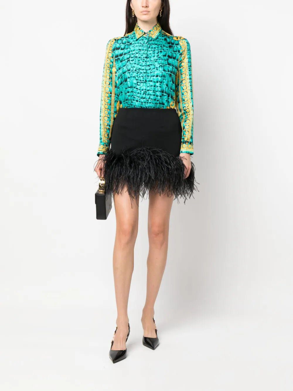 This Versace shirt showcases the brand's iconic Barocco print in a striking blue and yellow palette. Crafted from sumptuous silk, the design features a classic collar and concealed front button fastening, while the long sleeves with buttoned cuffs ensure a polished finish.