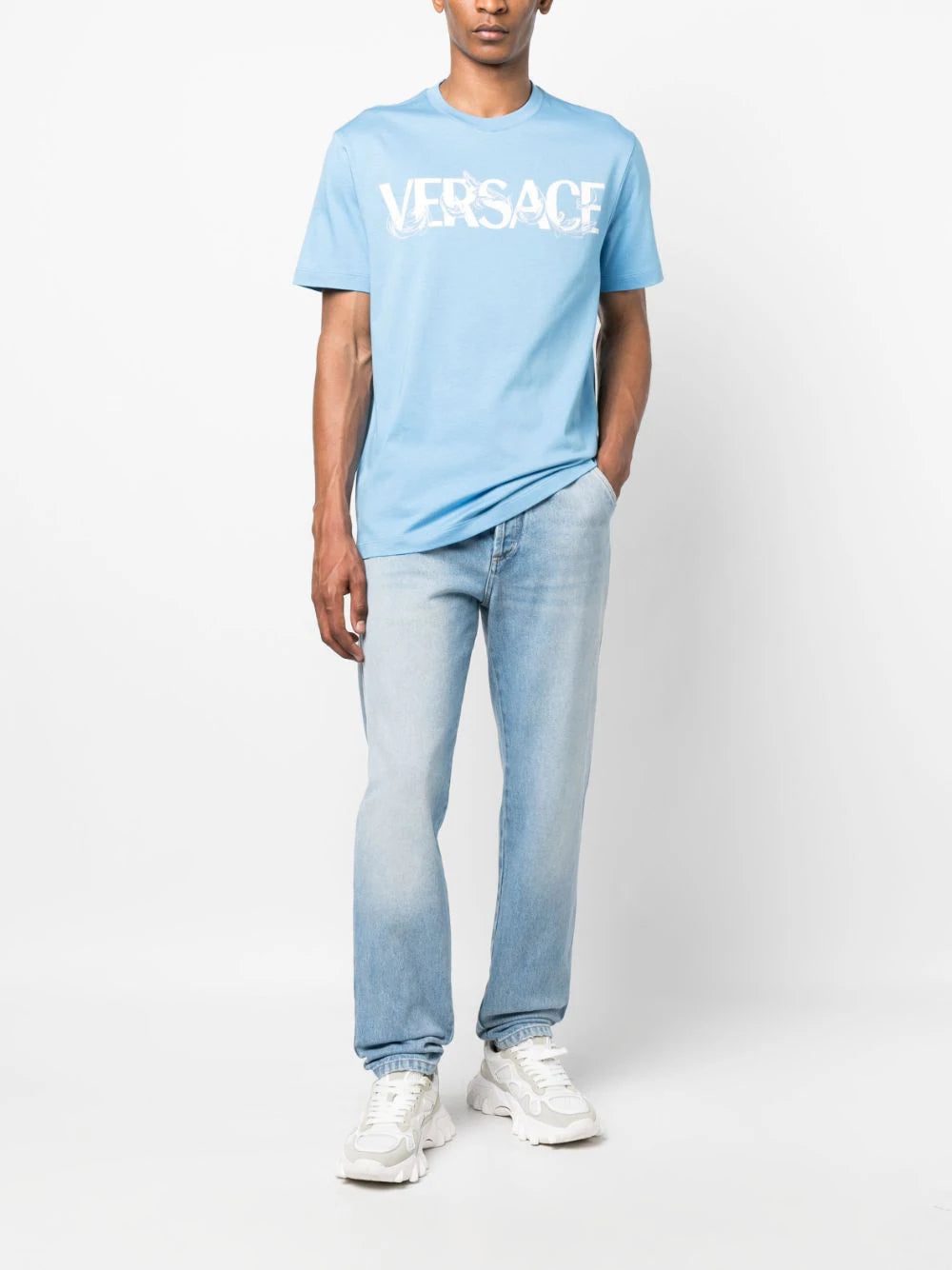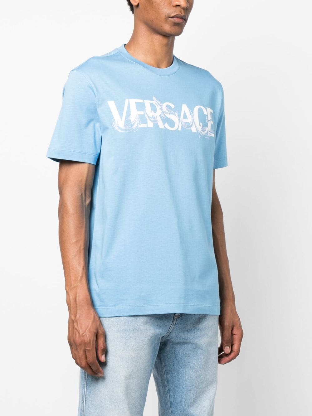 Versace refreshes its signature Barocco print with a subtler design, which appears on this T-shirt in white embroidery, enveloping the logo lettering print at the chest.