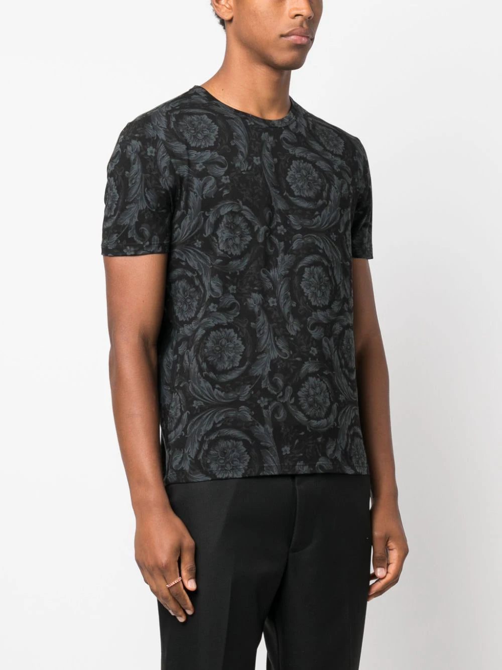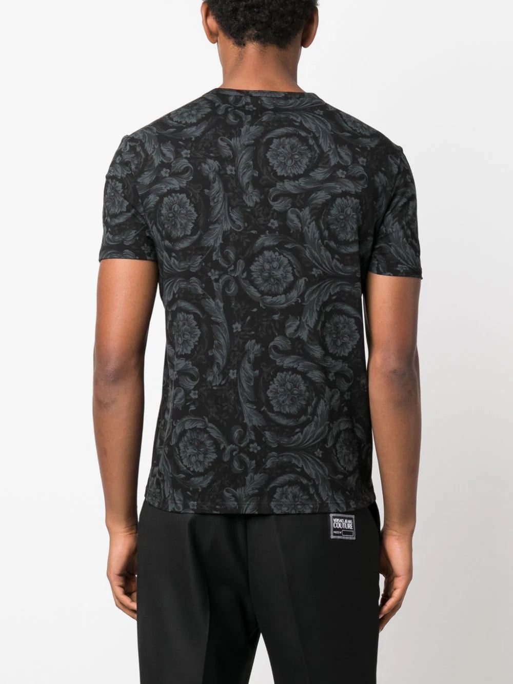 The baroque print showcased on this T-shirt is a tribute to Versace’s heritage styles. Constructed from stretch cotton in a black and grey palette, the garment exudes the distinctive opulence that defines the house.