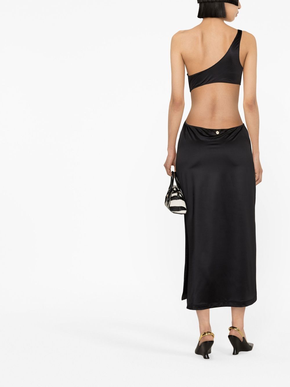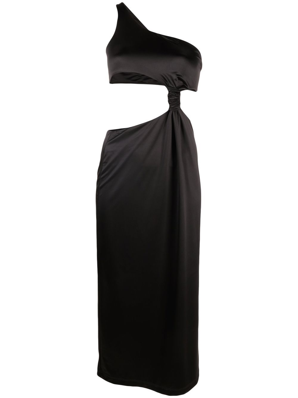 The Belize midi dress is peppered with details that speak to Versace's daring aesthetic. The all-black design is defined by wide cut-out detailing and artful knotting at the bodice, while the asymmetric one-shoulder neckline further enhances its opulent feel.