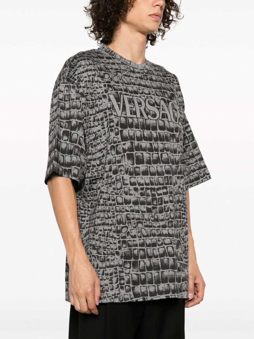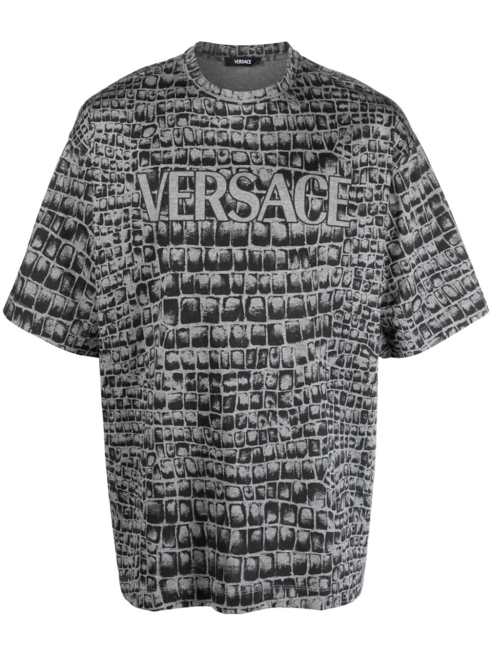 Crafted from soft cotton, this Versace T-shirt showcases the seasonal Coccodrillo print. It is designed in a relaxed fit and features the label's logo on the chest.