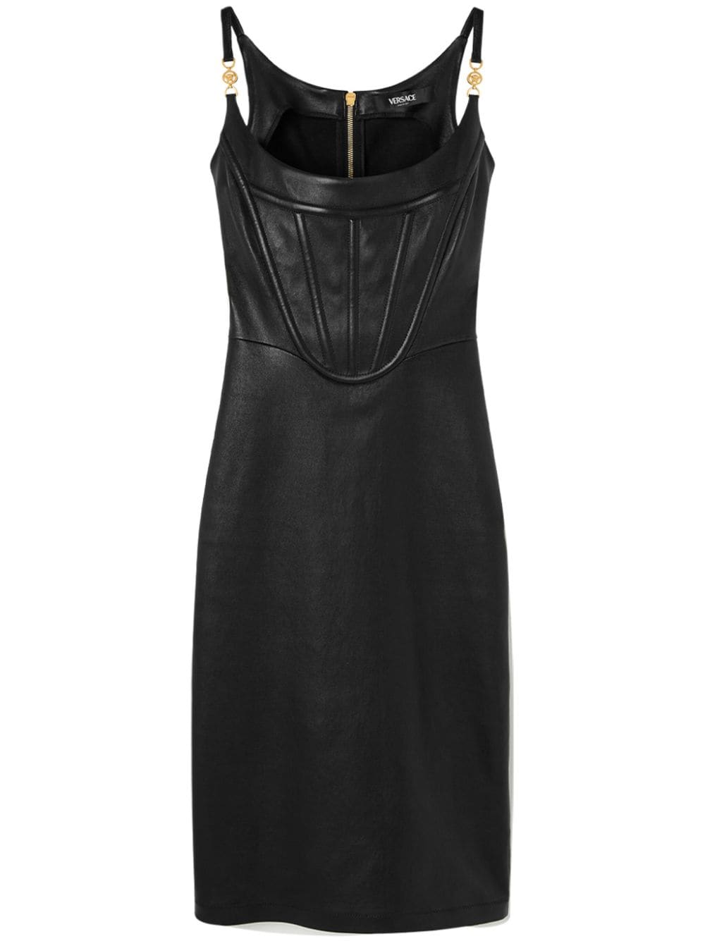 Versace corset-style leather midi dress