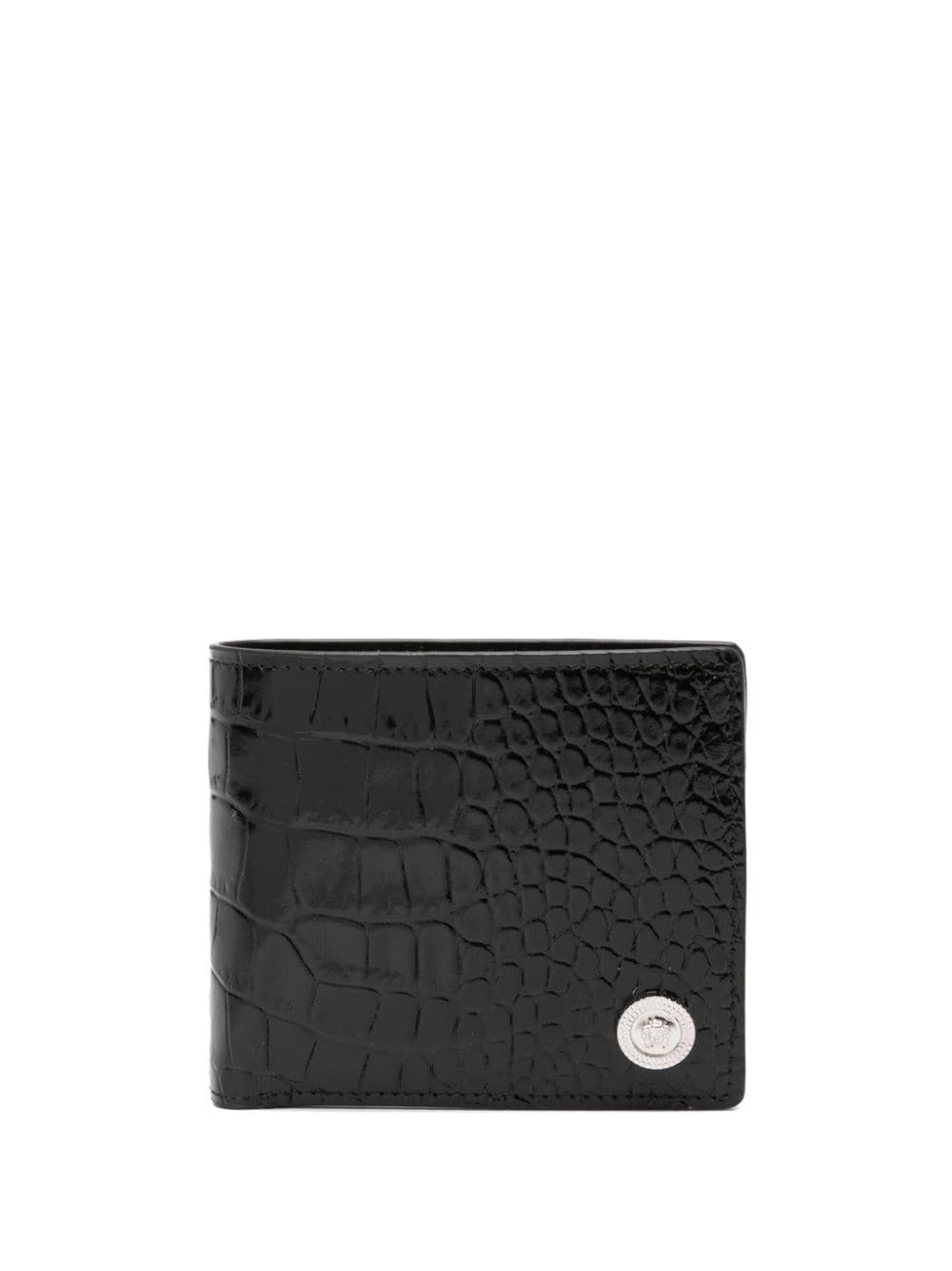 Versace revisits its iconic house codes in this crocodile-effect leather wallet. Adorned with a silver-tone Medusa Head, its bi-fold design includes compartments for cards, coins and notes.