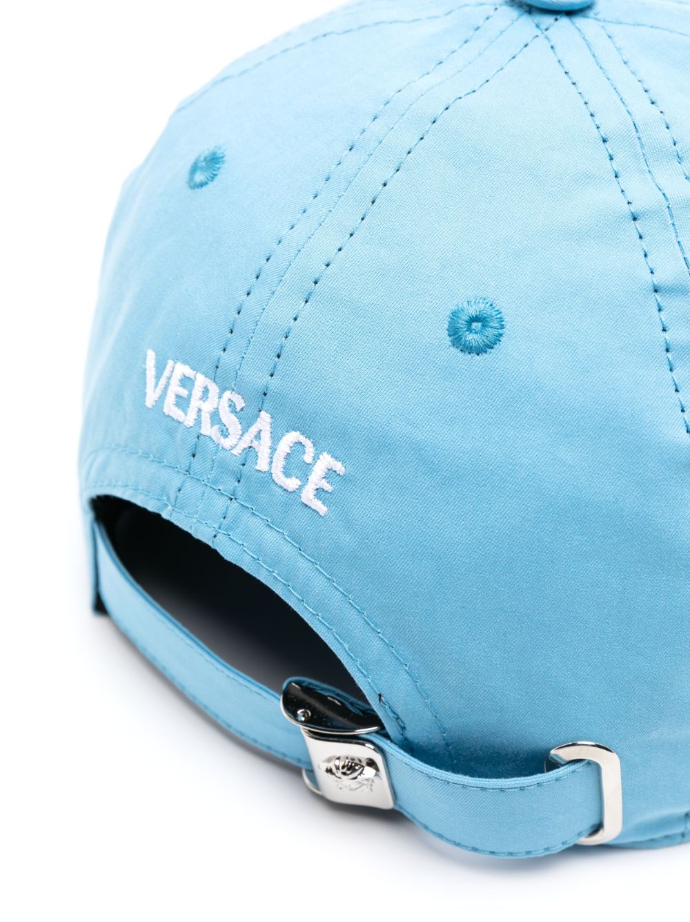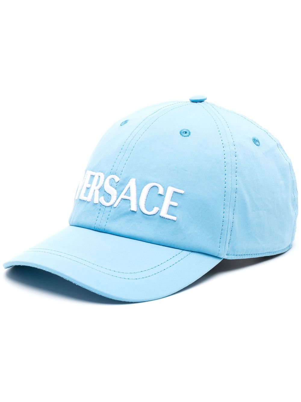 Rendered in a delicate light blue hue, this cotton-spun cap from Versace is embellished with the brand's signature logo embroidered at the front and back in contrasting white, lending it a recognisable feel.