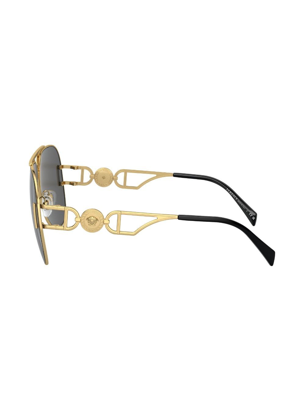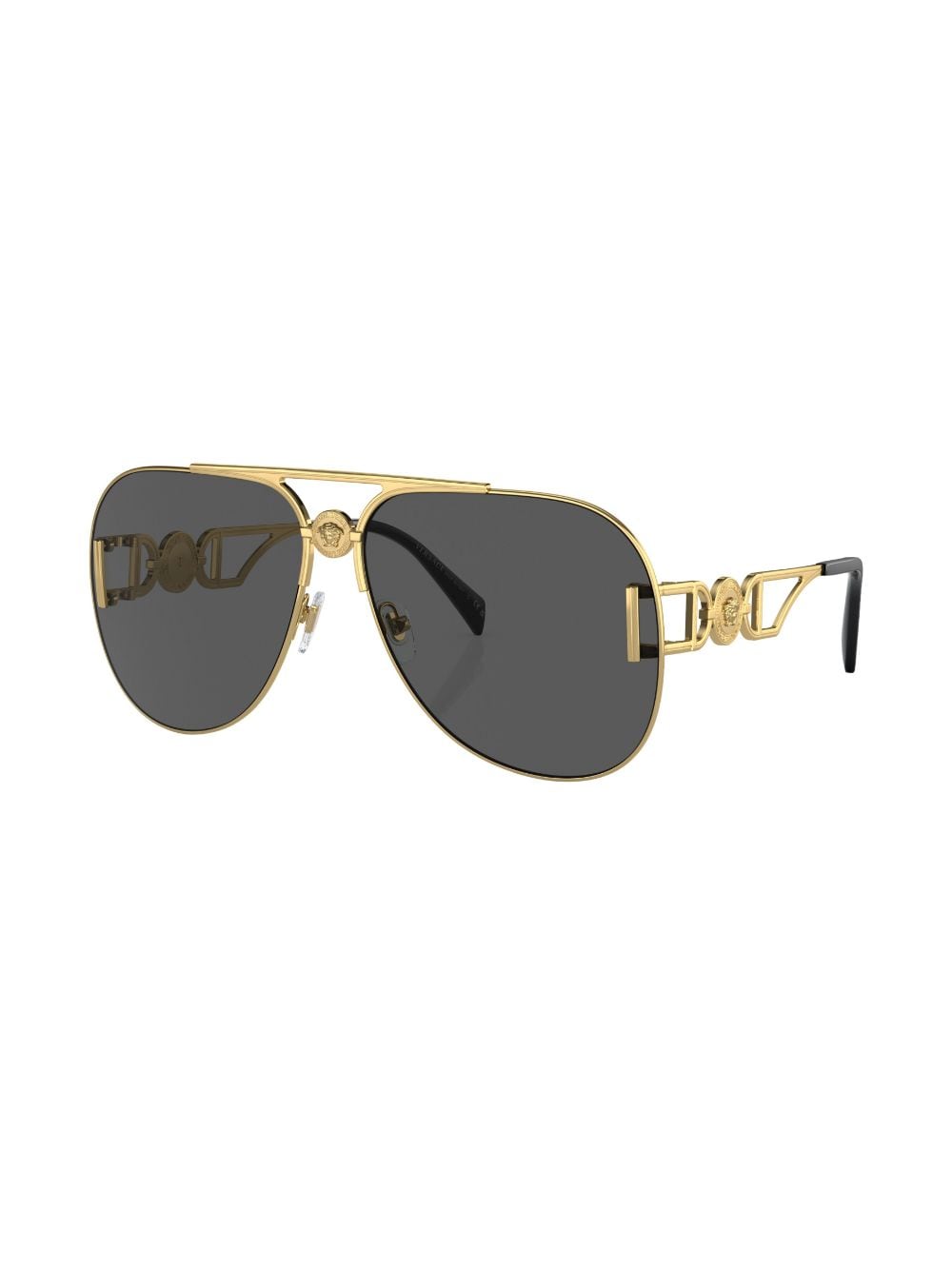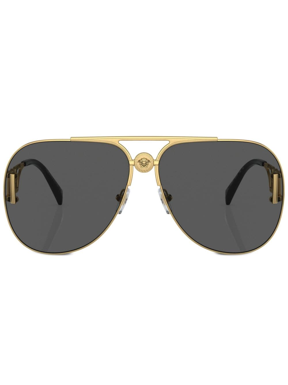 gold-tone grey tinted lenses pilot frame Medusa Head motif gold-tone logo plaque double bridge cut-out detailing sculpted arms curved tips These glasses come with a protective case.