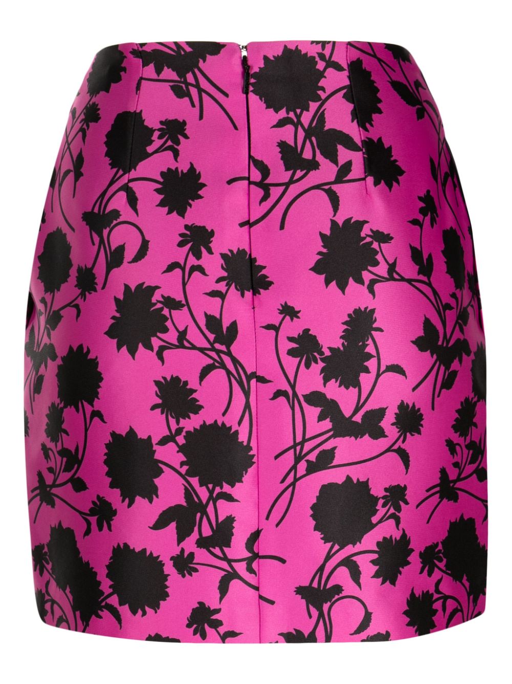Versace's decorative aesthetic is exemplified in this wool skirt through the fuchsia pink and black-toned floral print pattern.