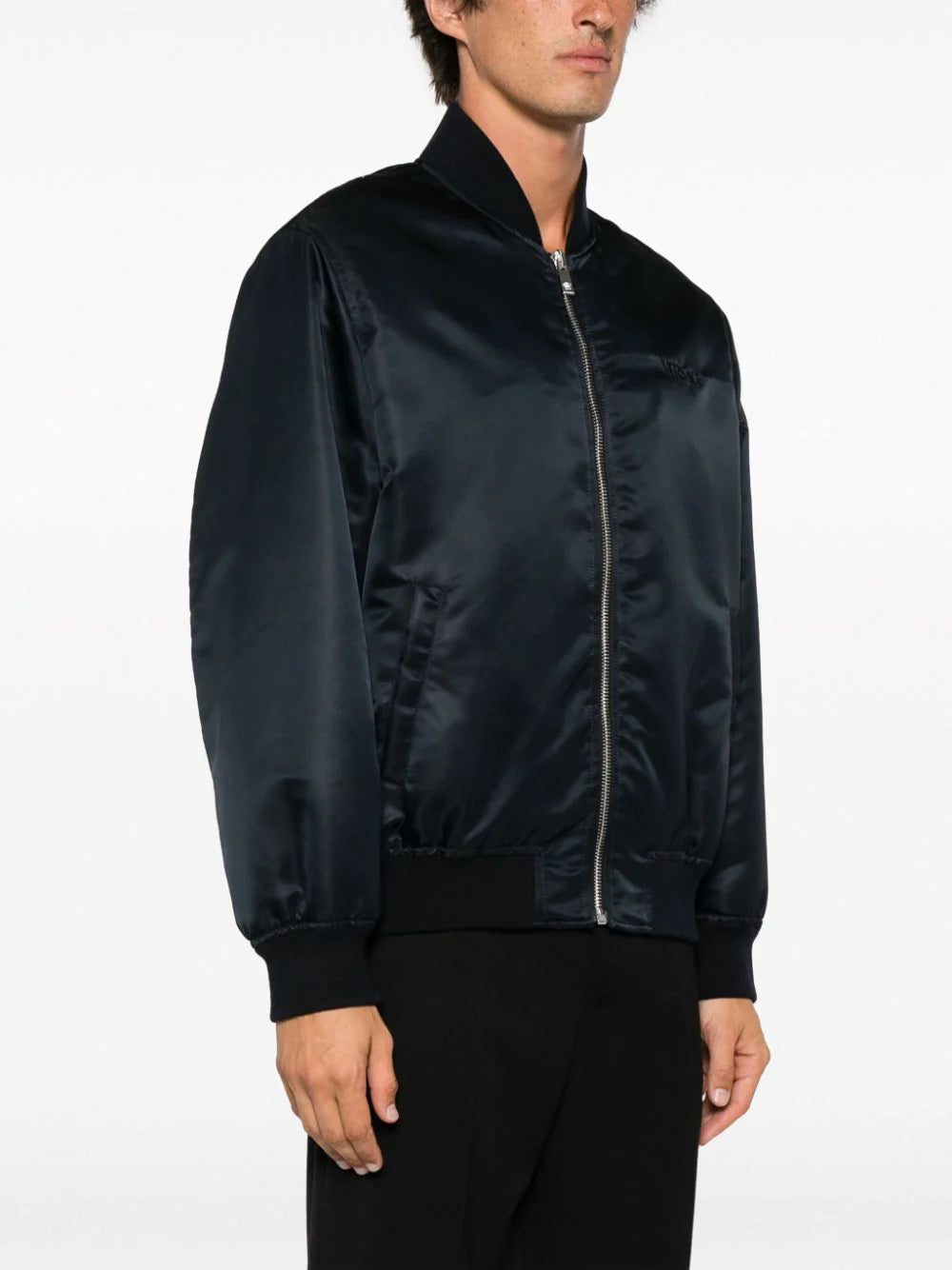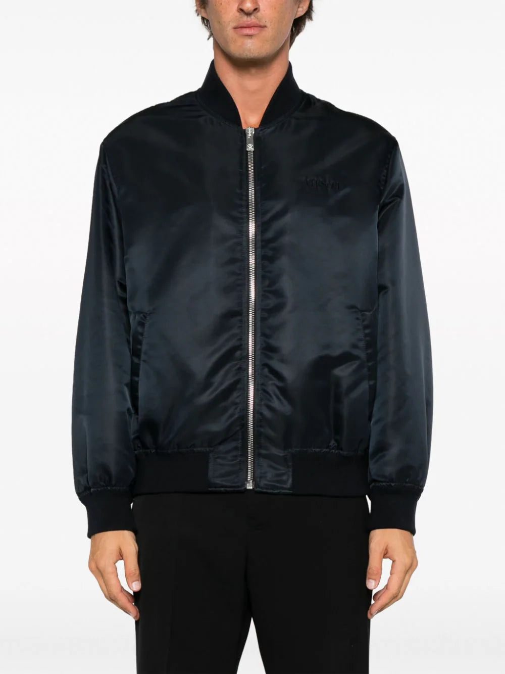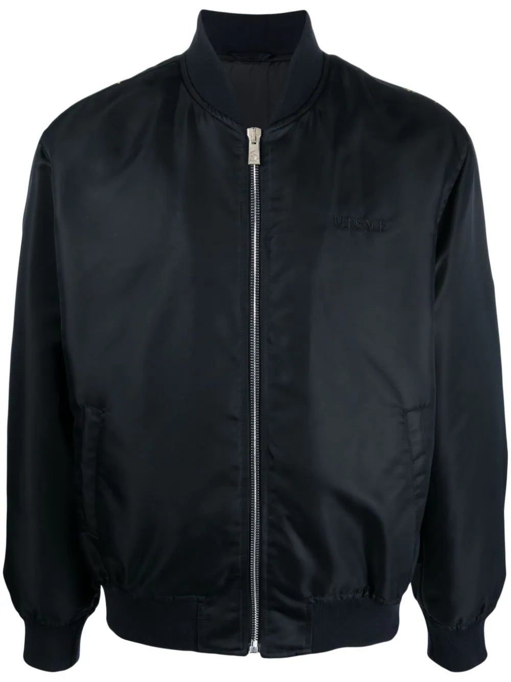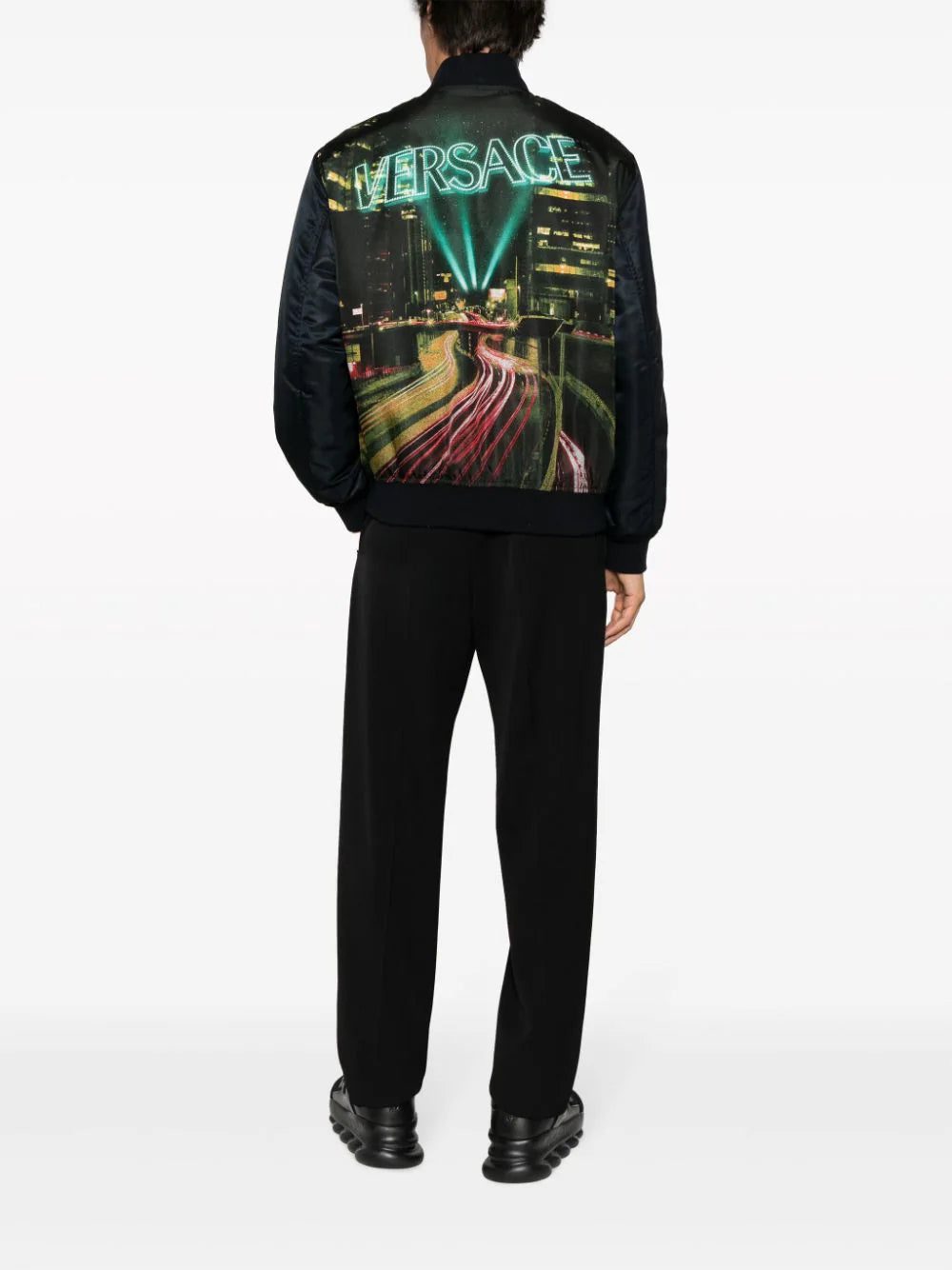 In a nod to Versace's preference for bold branding, large logo lettering and a city landscape illuminate the rear of this bomber jacket, while an understated embroidered logo is stitched on the chest in tonal threads.