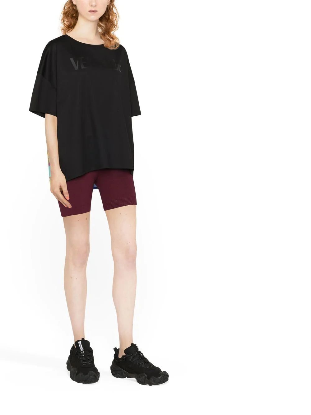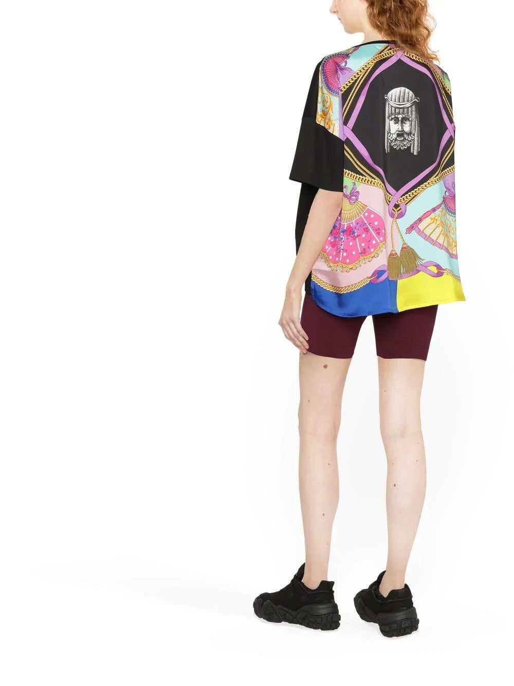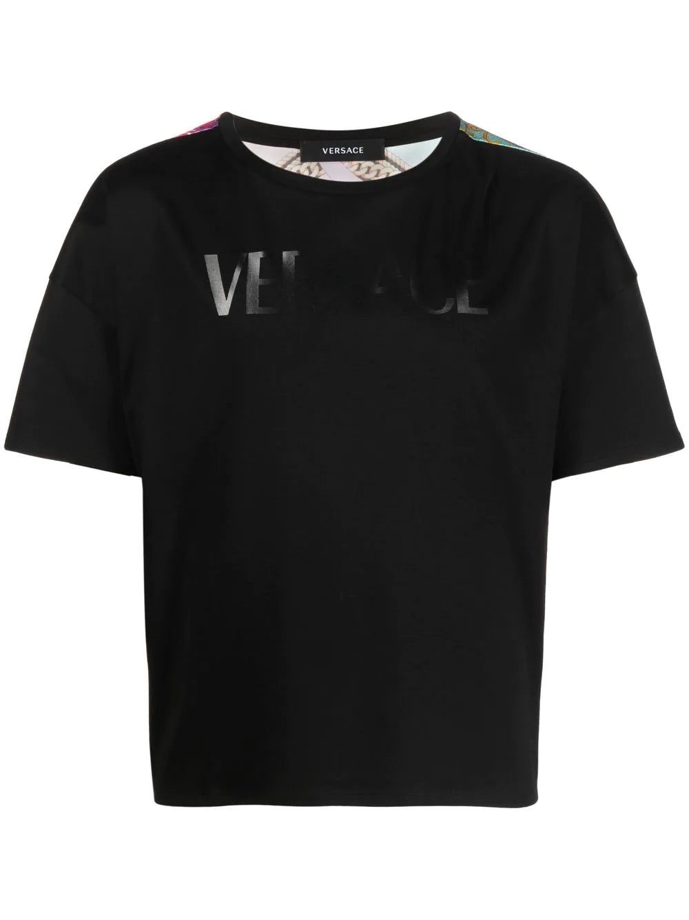 graphic print cotton T-shirt from VERSACE featuring black/multicolour, cotton, graphic print to the rear, logo print to the front, round neck, short sleeves and straight hem.