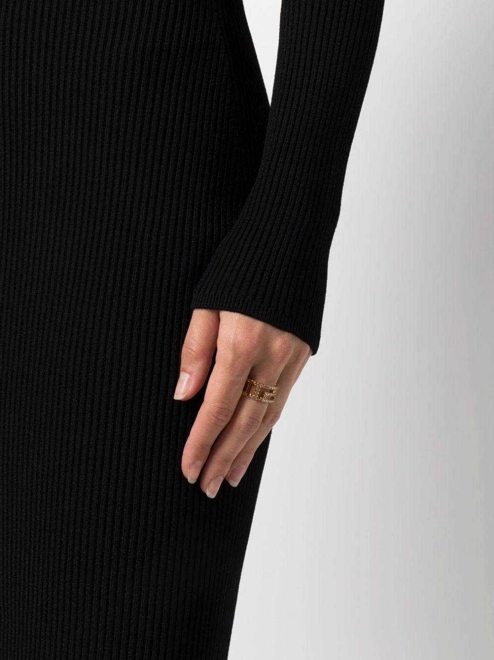 Versace elevates the iconic Greca motif with glimmering crystals, adorning this wide cut-out ring for AW23 in a polished gold-tone design.